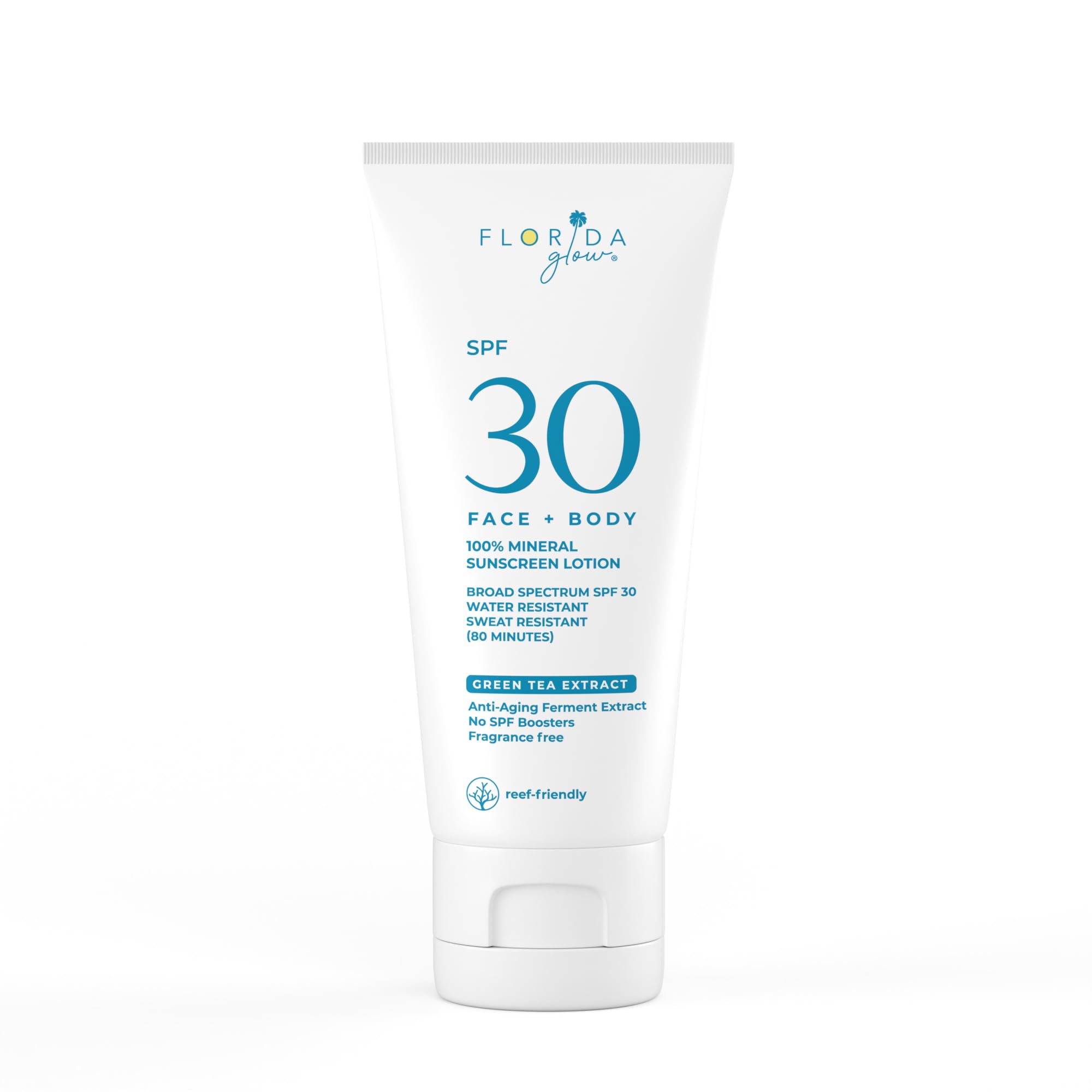 Florida Glow Mineral Sunscreen SPF 30 for Face & Body Lightweight Zinc Oxide Sunscreen Broad-Spectrum UVA/UVB Protection Water-Resistant (80 Min) Fragrance-Free Travel Size 3 oz