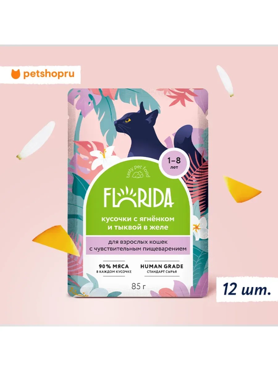 Florida Паучи для кошек с чувст. пищ., ягнёнок и тыква в желе,12х85г
