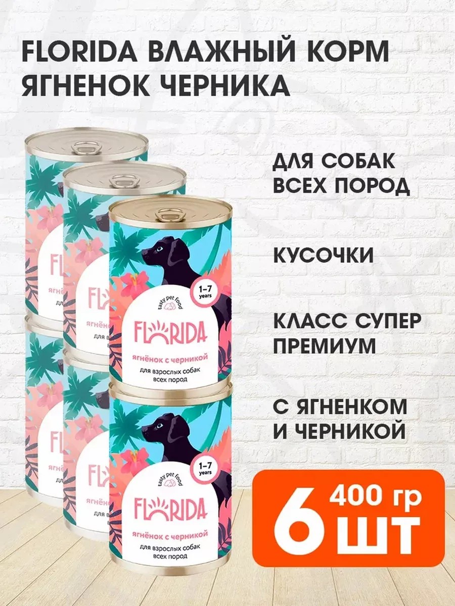 FLORIDA Корм влажный для собак ягненок черника 400 г 6 шт