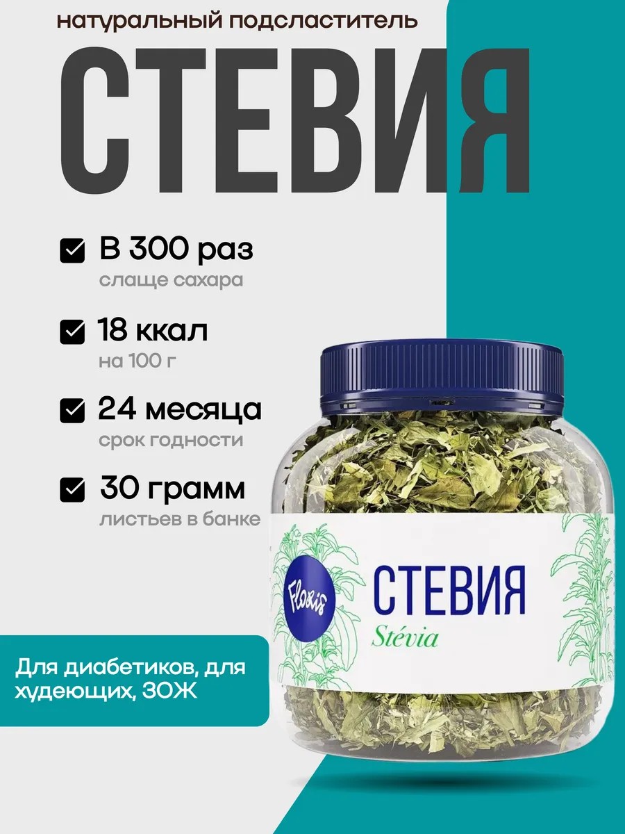 КомплектацияБанка стевии листья 30 г - 1 шт.