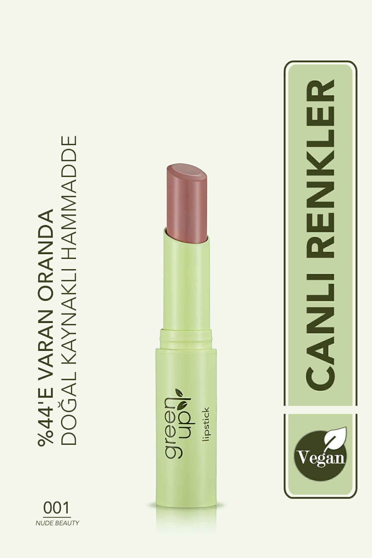Flormar Creamy Textured Intense Pigmented Vegan Lipstick - Green Up Lipstick -001 Nude Beauty-4251903322164