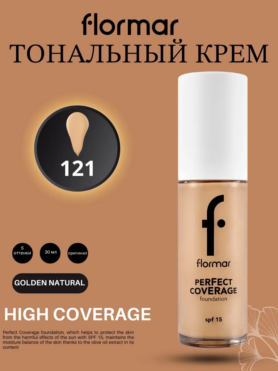 Тональный крем Flormar Perfect Coverage Foundation SPF15 специально разработан, чтобы ваша кожа выглядела свежей и гладкой в течение всего дня. Его инновационная текстура адаптируется к коже и движется вместе с ней, предотвращая оседание макияжа в морщинках и избегая эффекта маски. Мягкая и насыщенная текстура легко наносится, обеспечивая шелковистое и ультралёгкое ощущение на коже. При этом тональник обладает высокой степенью покрытия, эффективно скрывая несовершенства и выравнивая тон кожи. Полуматовый финиш выглядит естественно и подходит для всех типов кожи.