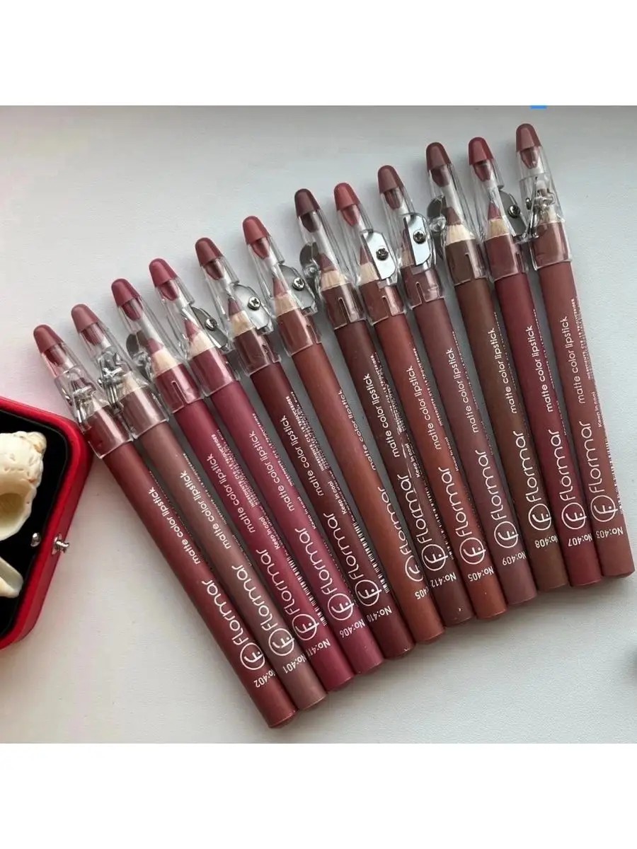 Flormar /Набор матовых карандашей для губ 12 штук / Карандаши для губ нюдовые оттенки / Карандаши для макияжа губ / Декоративная косметика для лица / Разноцветные карандаши для губ