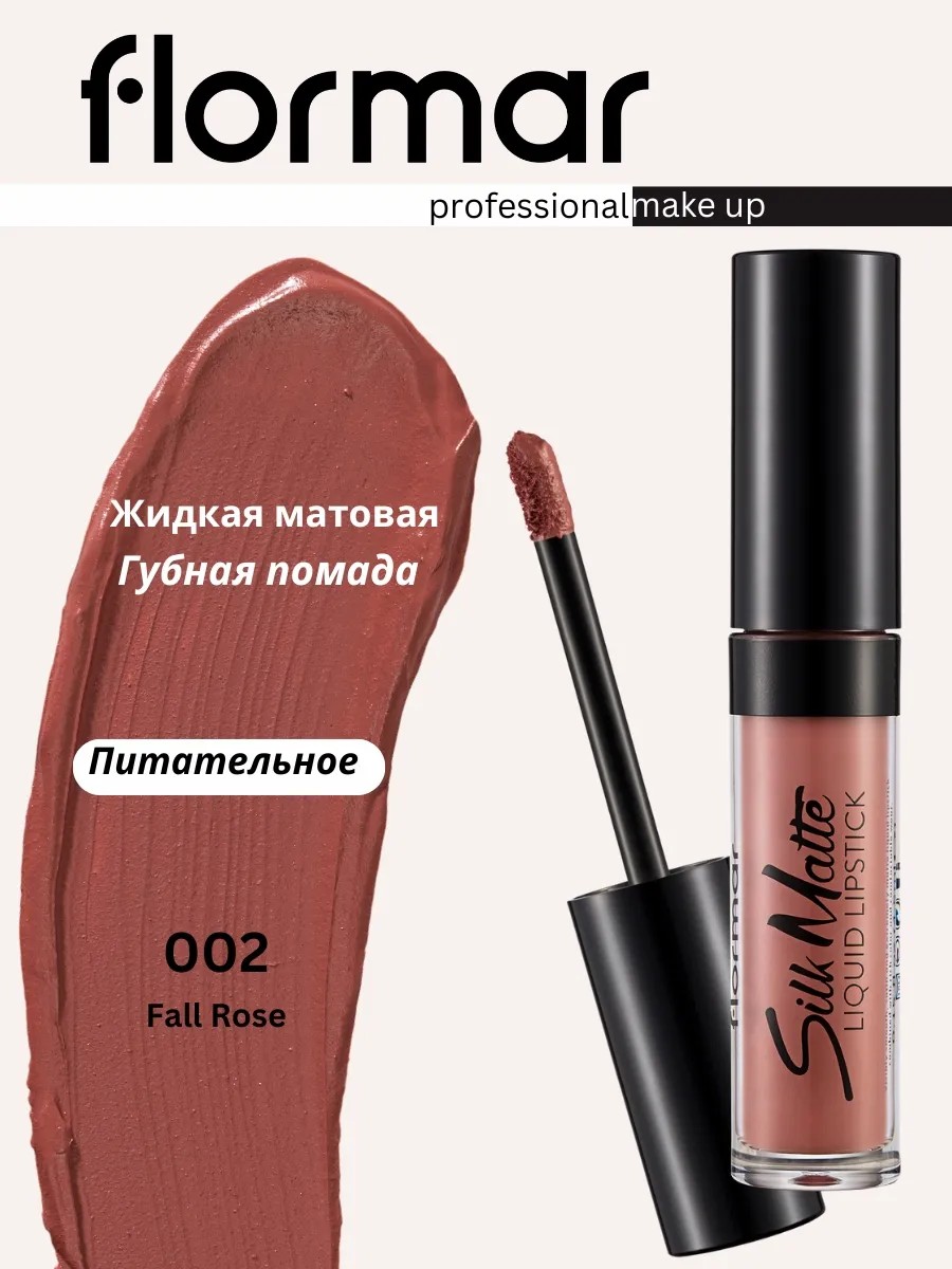 Flormar Silk Matte Liquid Lipstick Fall Rose сочетает насыщенный матовый цвет, длительное время носки и комфортное шелковистое ощущение.