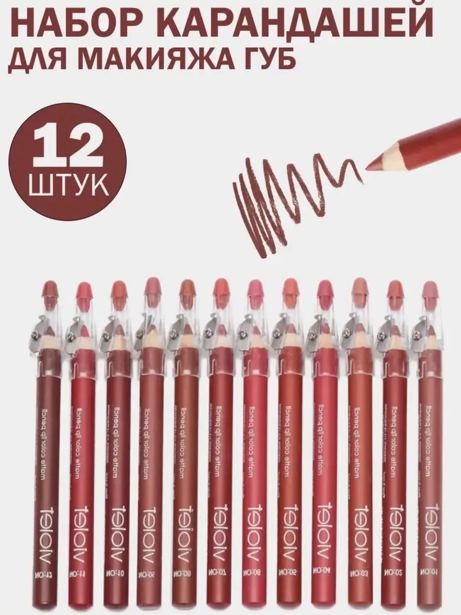 Декоративный контурный карандаш подарит твоим губам чёткий контур и насыщенный цвет. Губные карандаши имеют мягкий, но прочный водостойкий грифель. Не ломается и не крошится при нанесении. Интенсивно пигментированные цвета и стойкая формула не смоется от случайного контакта с водой. Мягкая текстура матовых карандашей обладает защищающими свойствами, предохраняют кожу губ от неблагоприятных факторов и сохраняют красоту и естественность в течение дня. Лайнер можно использовать для контура или растушевки. Как помаду в повседневном, дневном или вечернем макияже. Помогут добиться аккуратного контуринга, зрительно увеличивающего эффекта объёма губ. В наборе палитра из 12 штук модных ярких и натуральных нюдовых оттенков: перламутровый, пудровый, темный коричневый, персиковый, красный, розовый, бежевый нюд, пыльная роза. Выбирайте тон на свой вкус. Цветовая гамма подходит под любую внешность. Питательный бархатный карандаш станет отличным подарком как самостоятельно, так и в составе бьюти-бокса. Любая женщина по достоинству оценит подарочные наборы на День Рождения. Удобный колпачок - точилка позволит поддерживать ваш макияж в боевой готовности. Используйте подводку в повседневном аутфите или как профессиональный инструмент. Вы сможете добиться не только чёткого и аккуратного контура, но и увеличения объёма губ. Китайская женская декоративная косметика для лица - отличный выбор для молодых девушек и подростков, это разнообразие тонов и уверенностей в вашей красоте!