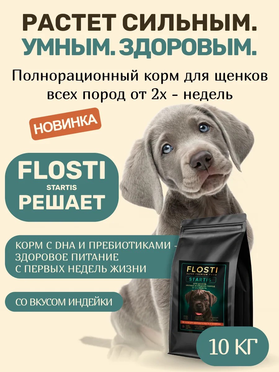 FLOSTI Сухой корм для щенков всех пород, индейка 10 кг