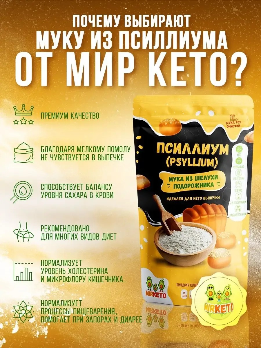 Псиллиум (Psyllium husk) - это природный продукт, получаемый из семян растения подорожника (Plantago ovata). Он широко известен своими полезными свойствами и используется в пищевой промышленности, а также в медицине. Псиллиум доступен в различных формах, включая псиллиум муку, псиллиум в капсулах, псиллиум шелуху подорожника и псиллиум порошок подорожника. Каждая из этих форм имеет свои преимущества и может использоваться в различных целях. Псиллиум является богатым источником растворимой и нерастворимой клетчатки, которая играет важную роль в поддержании здоровья пищеварительной системы. Растворимая клетчатка псиллиум образует гель в желудке, что помогает улучшить перистальтику кишечника и снизить уровень холестерина в крови. Нерастворимая клетчатка псиллиум, с другой стороны, помогает улучшить процесс переваривания пищи и предотвращает запоры. Наш псиллиум в виде муки (порошок) широко используются в выпечке, особенно в рецептах для безглютеновых продуктов. Они добавляют текстуру и объем продуктам, а также помогают улучшить структуру теста. Кроме того, мука псиллиума из может быть использована в кето-диете, так как она содержит незначительное количество углеводов. Шелуха подорожника также может использоваться в качестве природного заменителя яиц в рецептах для веганов и аллергиков на яйца. Она обладает связывающими свойствами, которые помогают удерживать ингредиенты вместе и придавать блюдам нужную консистенцию. Данный продукт также может быть использована в качестве пребиотиков, которые способствуют росту полезных бактерий в кишечнике и улучшают общую микрофлору. В целом, псиллиум является ценным продуктом, который может быть использован в различных аспектах питания и здоровья. Он обладает множеством полезных свойств, включая поддержку пищеварительной системы, снижение холестерина, улучшение текстуры и структуры продуктов, а также поддержку здоровой микрофлоры. Благодаря своей универсальности и многообразию форм, псиллиум может быть легко интегрирован в различные рецепты и диеты. ! Псиллиум противопоказан при: Индивидуальной непереносимости продукта, беременности, кормлении грудью. Пищевая ценность продукта на 100г: белки 2,9; углеводы 7,3; жиры 0,1; энерг.ценность 42 ккал; пищевые волокна 85г (из них растворимых 47г) Страна происхождения: Индия