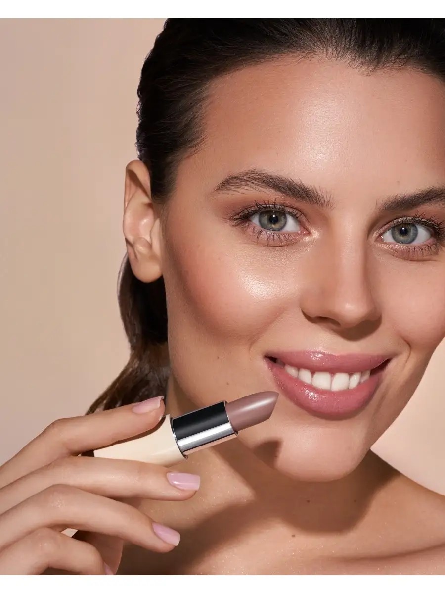 Moisturizing lipstick "Nudes" tone N-07 beige shiny nude - Active ingredients: * Japanese camellia oil - has a pronounced anti-inflammatory and wound-healing effect. * Natural waxes - beeswax, candelilla and carnauba - provide intensive nutrition and protection of the skin of the lips from the negative impact of the environment. * Alaria Esculenta extract - has a smoothing effect, stimulates the synthesis of hyaluronic acid. * Bisabolol - the active substance of chamomile extract, has a powerful anti-inflammatory and wound-healing effect, protects the sensitive skin of the lips from the adverse effects of the environment.