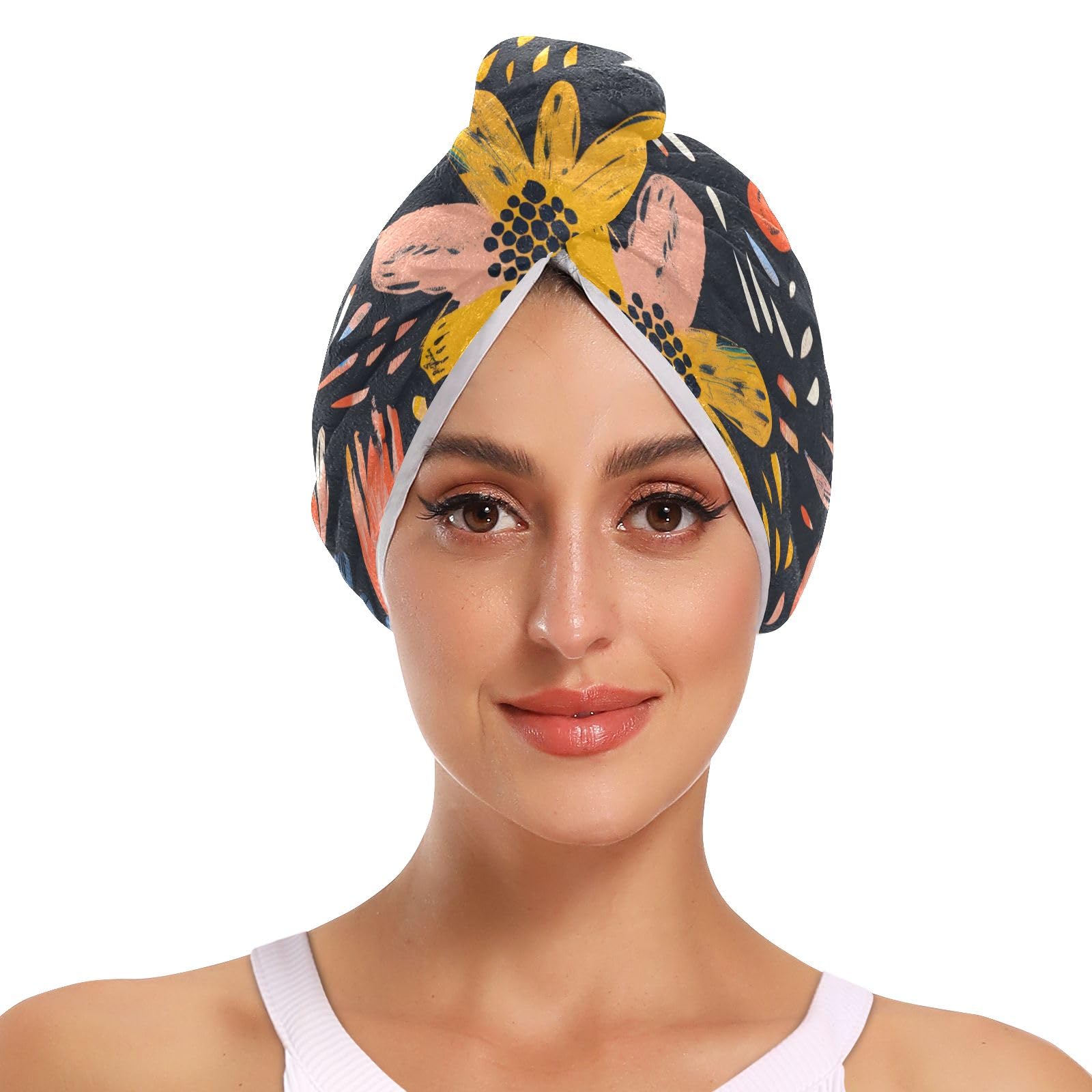 Flower Graffiti Hair Towel 2 Pack Super Absorbent Hair Drying Towel Quick Dry Hair Turbans Head Towel with Button Twisty Wrap for Women Girls