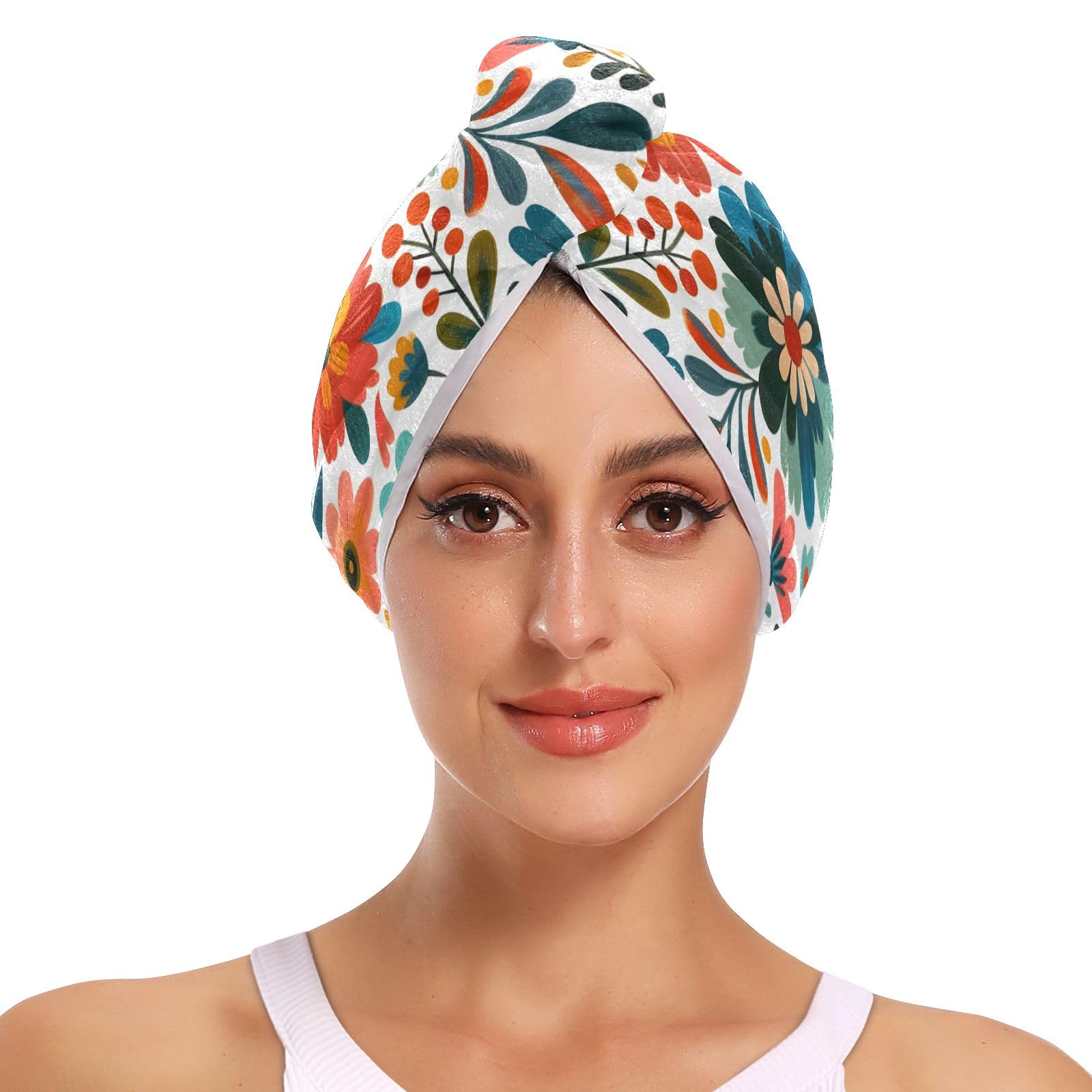 Flower Hair Towel 2 Pack Super Absorbent Hair Drying Towel Quick Dry Hair Turbans Head Towel with Button Twisty Wrap for Women Girls