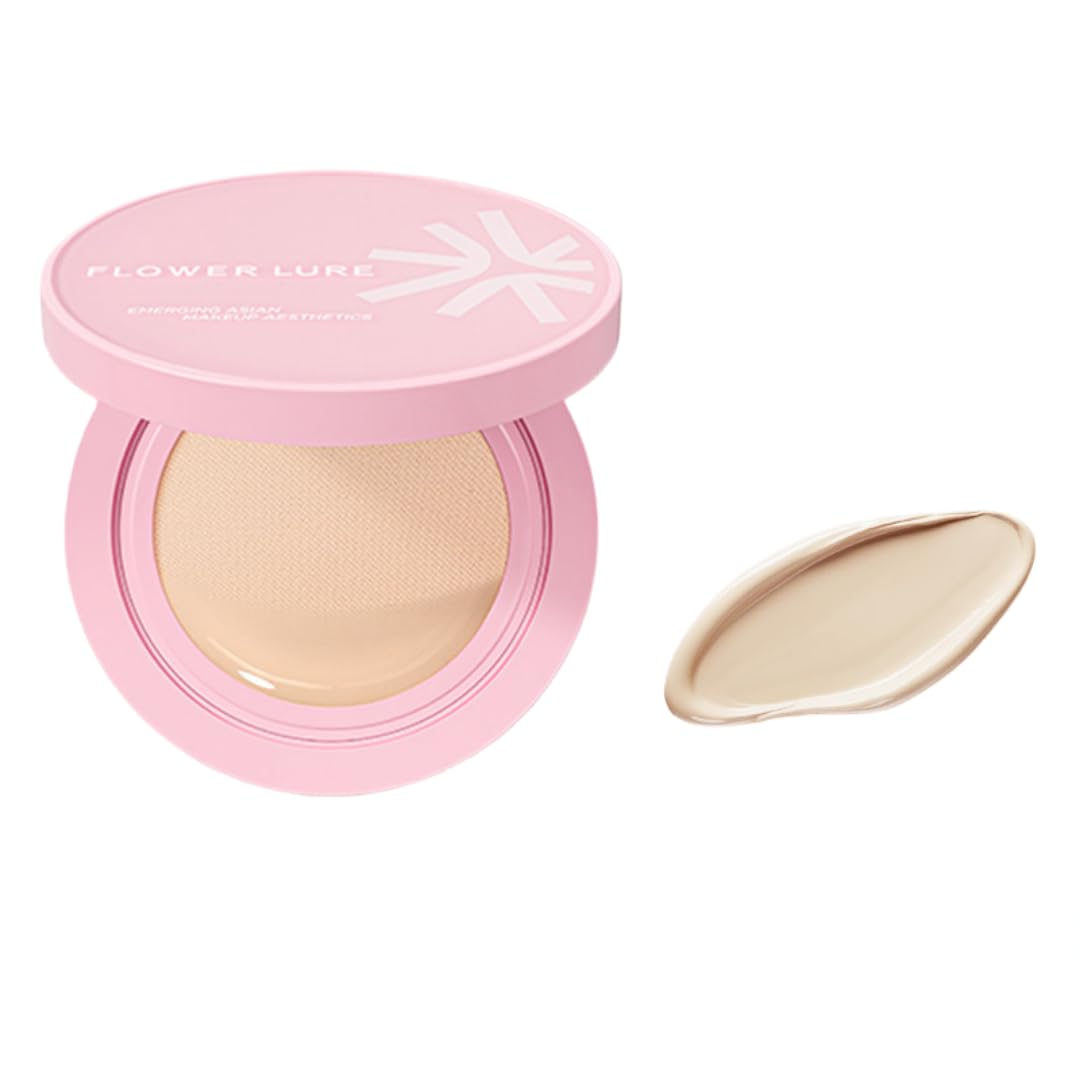 Flower Lure Cushion Foundation Lightweight Hydrating Oil Control Full Coverage Long Lasting Matte Dewy Finish Transfer-Proof for Dry & Oily Skin (Pink Y01 14G) Pink Y01 1 Ounce (Pack of 1)