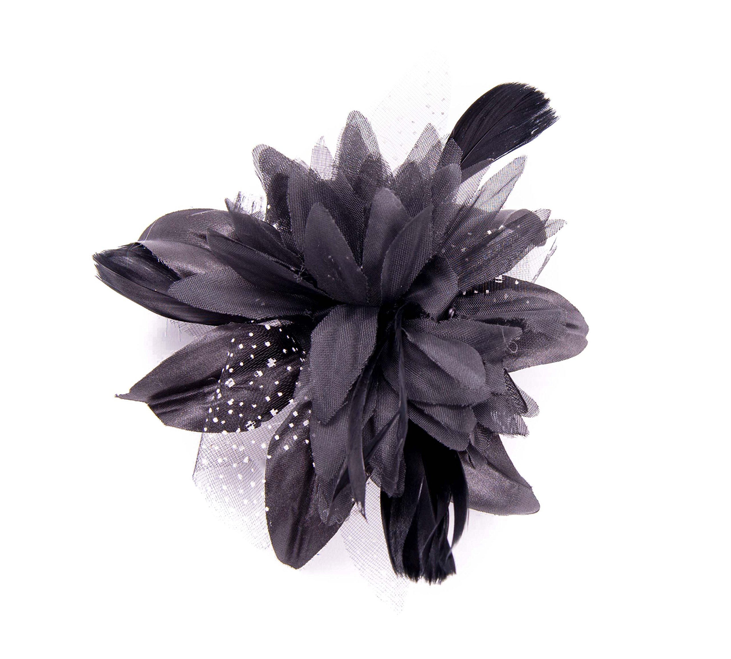 Flower Net and Feathers Fascinator On A Comb 9 Colours (Black)