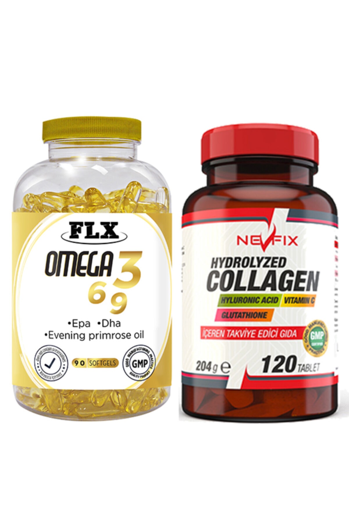 FLX Omega 3-6-9 Fish Oil 90 Softgel & Nevfix Collagen Glutathione Hyaluronic Vitamin C 120 Tablets