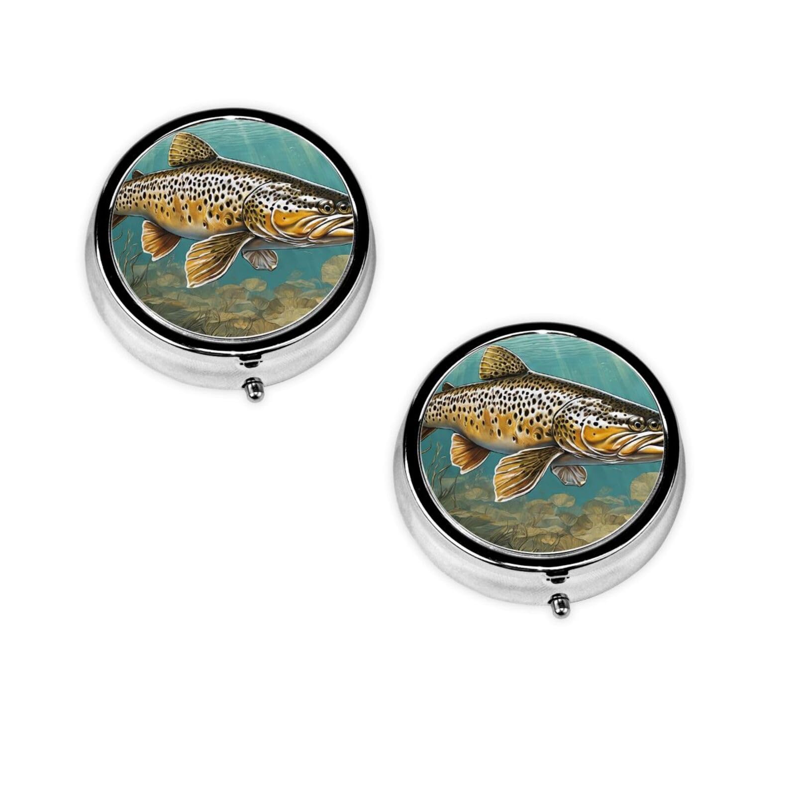 Fly Fish Printed Mini Round Pill Box Pill Box 3 Compartment Medicine Pill Case Pill Organizer Travel Pillbox Portable Pill Box for Pocket Home Office Use