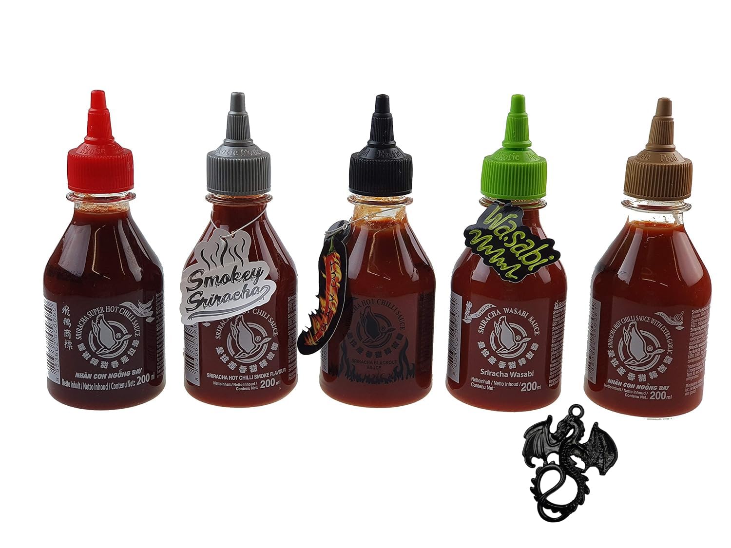 Smokey Sriracha: Deze "barbecue" Sriracha presenteert zich met een heerlijk rokerig aroma. Perfect geschikt voor pizza, pulled pork-sandwiches, lenterollen en nog veel meer.