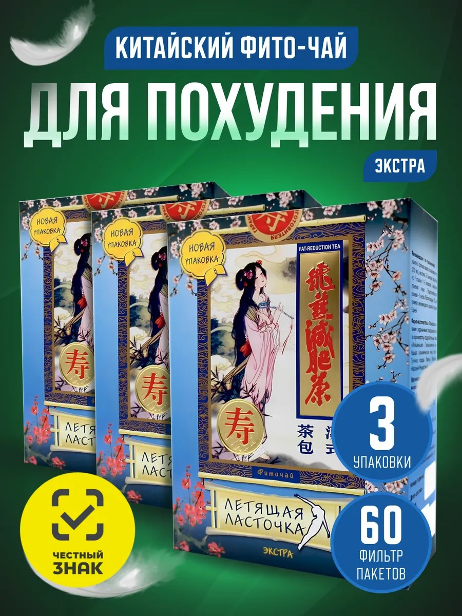 | Комплектация | Летящая ласточка Экстра чай для похудения эффективный для женщин и мужчин, 60 пакетиков |