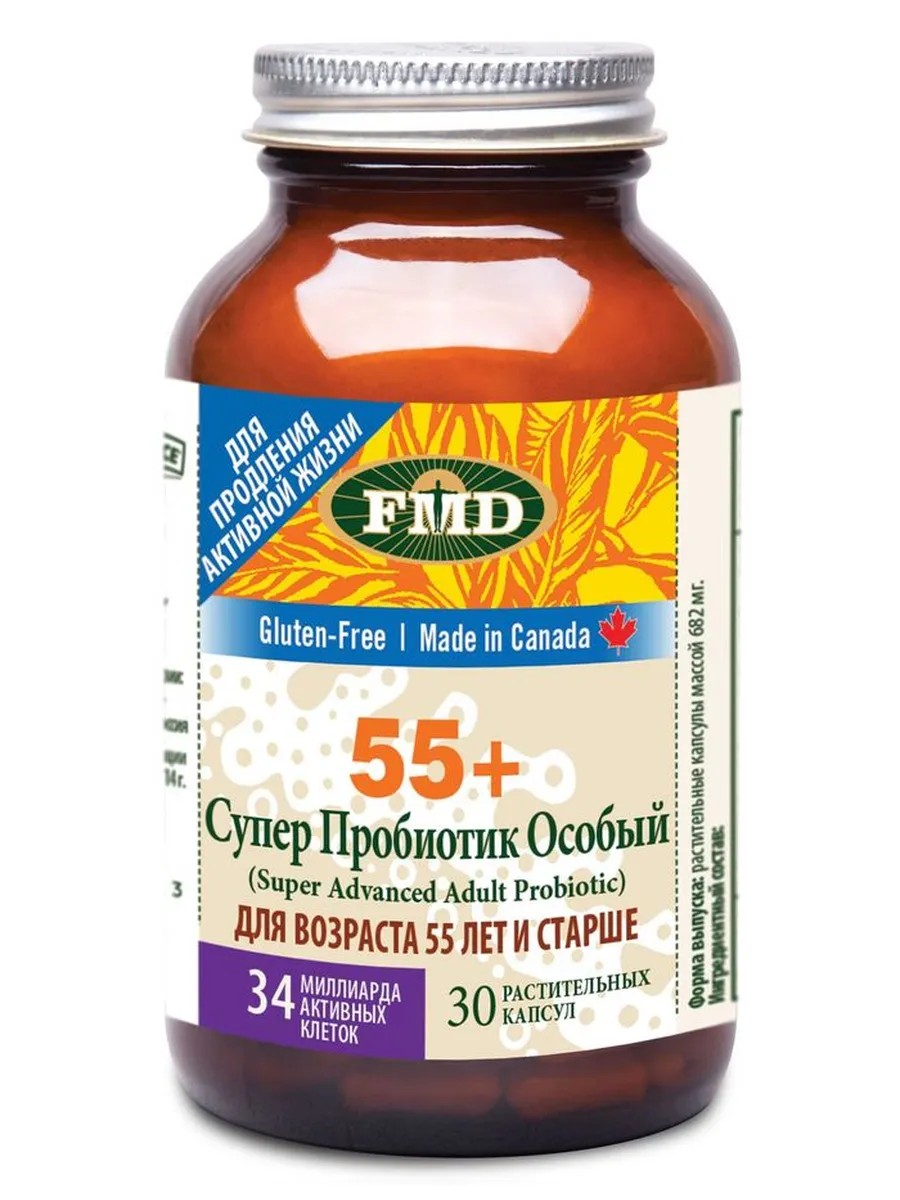 • 55+ (Супер 7) Пробиотик Flora Udo's Adult 30 обеспечивает организм человека живыми микроорганизмами, способствующими поддержанию нормального микробиоценоза кишечника.