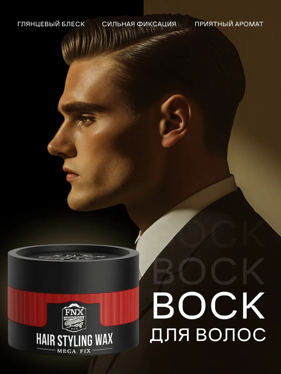 Воск для волос FNX BARBER MEGA FIX 150 мл подходит для всех типов волос. Сильная фиксация и дополнительный блеск.