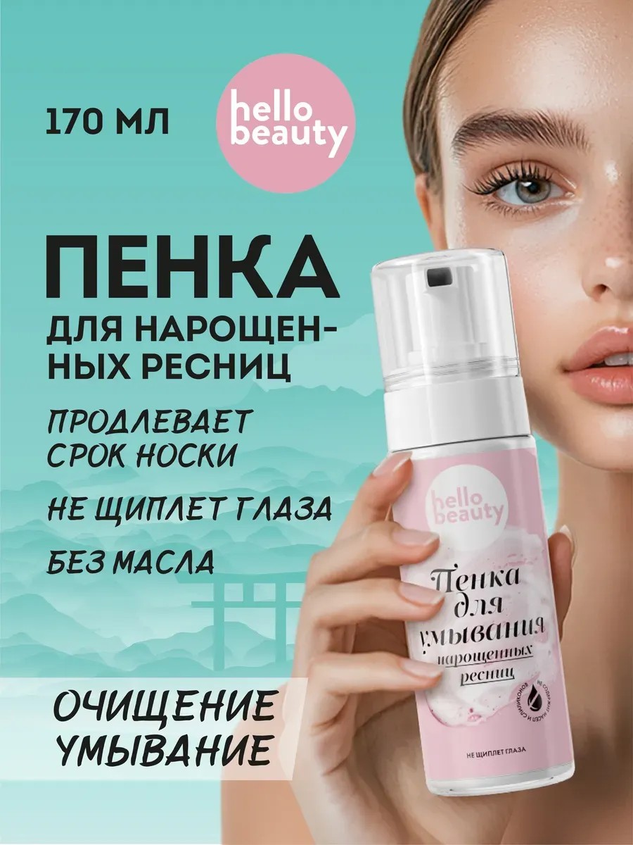Пенка для очищения нарощенных ресниц и умывания. Без масла, не щиплет глаза. Умывалка мусс для лица / Флакон с пенообразователем - 170 мл. Мицеллярная пенка для умывания нарощенных ресниц. Мицеллярные средства для очищения известны мягкостью воздействия на кожу, но при этом - высокой эффективностью в удалении загрязнений. Мицеллы, попадая на поверхность кожи в составе пенки для умывания, захватывают частички грязи и кожного сала, позволяя тем самым с легкостью смыть их. Экстракты кокоса и миндаля в формуле помогают защищать кожу от пересушивания и сохранять ее бархатистую нежность.Представляем вам уникальную пенку для умывания и увлажнения для нарощенных ресниц - ''Пенка для умывания и нарощенных ресниц. Умывалки для лица''. Это невероятное средство, которое сочетает в себе все лучшие качества и инновационные технологии, чтобы обеспечить вашей коже и ресницам идеальный уход.Наша пена для умывания создана на основе натуральных ингредиентов, включая экстракт, который питает и увлажняет кожу, делая ее мягкой и шелковистой. Благодаря уникальной формуле, пенка мягко очищает кожу, удаляя загрязнения и макияж, не пересушивая ее. Идеально подходит для всех типов кожи, включая жирную и комбинированную. Очищает и предотвращает появление прыщей. Наша косметика для умывания также обогащена активными компонентами от Hello, которые способствуют укреплению и росту ресниц. Она бережно очищает ресницы от макияжа и остатков, делая их более здоровыми и красивыми. Кроме того, пенка помогает укрепить корни ресниц, предотвращая их выпадение.Наша пенка для умывания и нарощенных ресниц - это не просто средство для очищения, это целый комплексный уход за кожей подростков и ресницами. Она помогает бороться с проблемами, такими как прыщи, черные точки и жирная кожа. Она также увлажняет и питает кожу, делая ее мягкой и упругой.Не упустите возможность попробовать нашу уникальную пенку для умывания и нарощенных ресниц. Станет незаменимым помощником в вашем ежедневном уходе за кожей и ресницами.