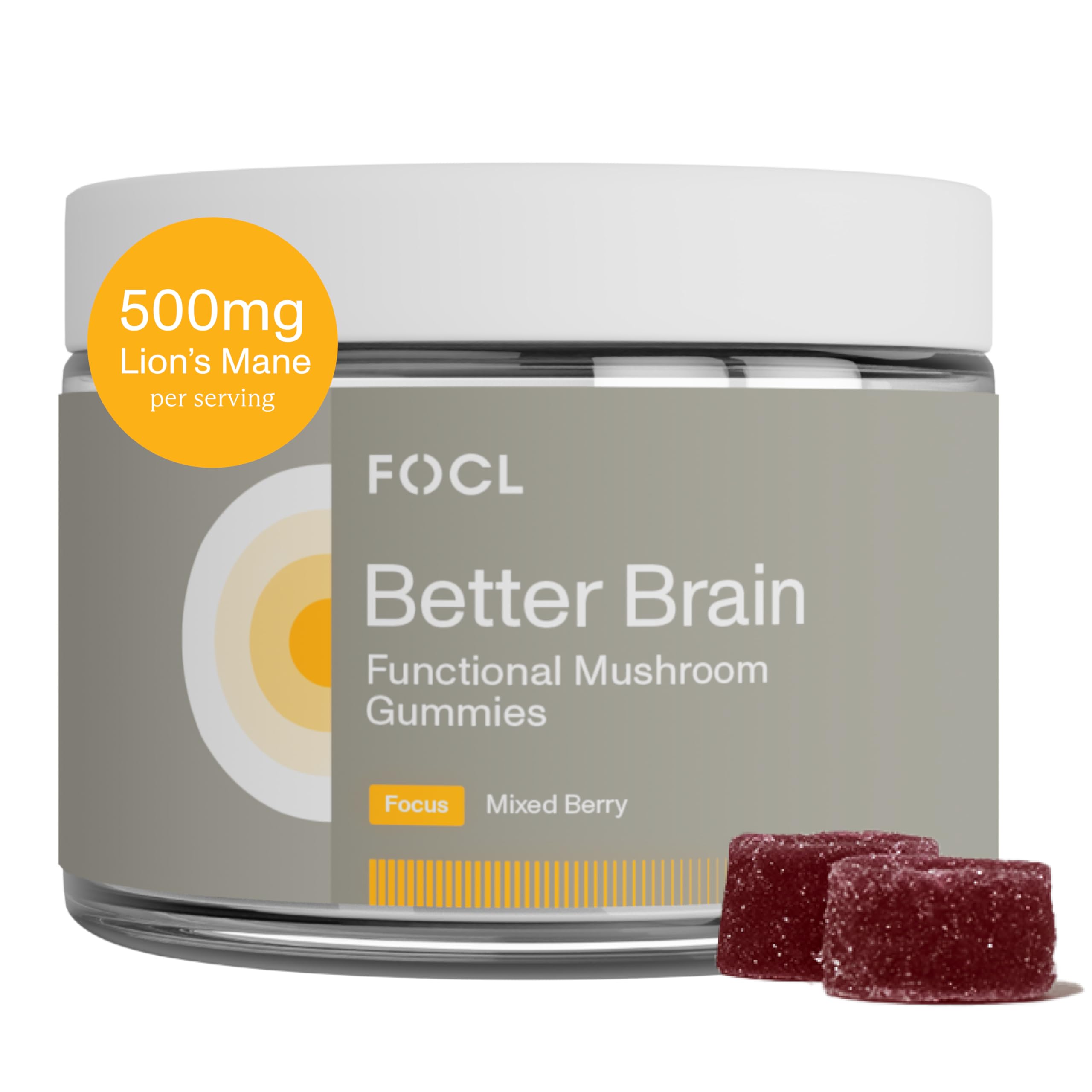 Quality Assured - With third-party testing, our mushroom supplement gummies maintain premium quality standards for your wellbeing. Packed with nutrient-rich ingredients for cognitive support. Trusted Quality - Our vegan, non-GMO mushroom gummies are made with organic, 100 plant-based ingredients that are grown in the USA. No Pest or Herbicides, ever. Sustainably crafted and cruelty-free. We never compromise quality. Higher Dosage than Leading Gummies - Enjoy 1-2 Gummies per day to support focus, memory, and immunity. Use daily for best results. Each gummy offers Lion's Mane (300mg), Cordyceps (100mg), and Reishi (10mg) to fuel your cognition. 30 gummies per container, Mixed Berry Flavor. Functional Mushroom Complex - Lions Mane Mushrooms improve focus, memory, and mental clarity. Cordyceps Mushrooms enhance stamina and energy. Reishi Mushrooms strengthens immune system and promotes relaxation. Fuel your brain with nature's secret weapon! FOCL Mushroom Gummies are packed with the finest nootropics and immunity-boosting fungi. With Lion's Mane, Reishi, Cordyceps, and a ginger twist, it's a tasty treat that promotes robust cognitive support, immunity and stamina boost.