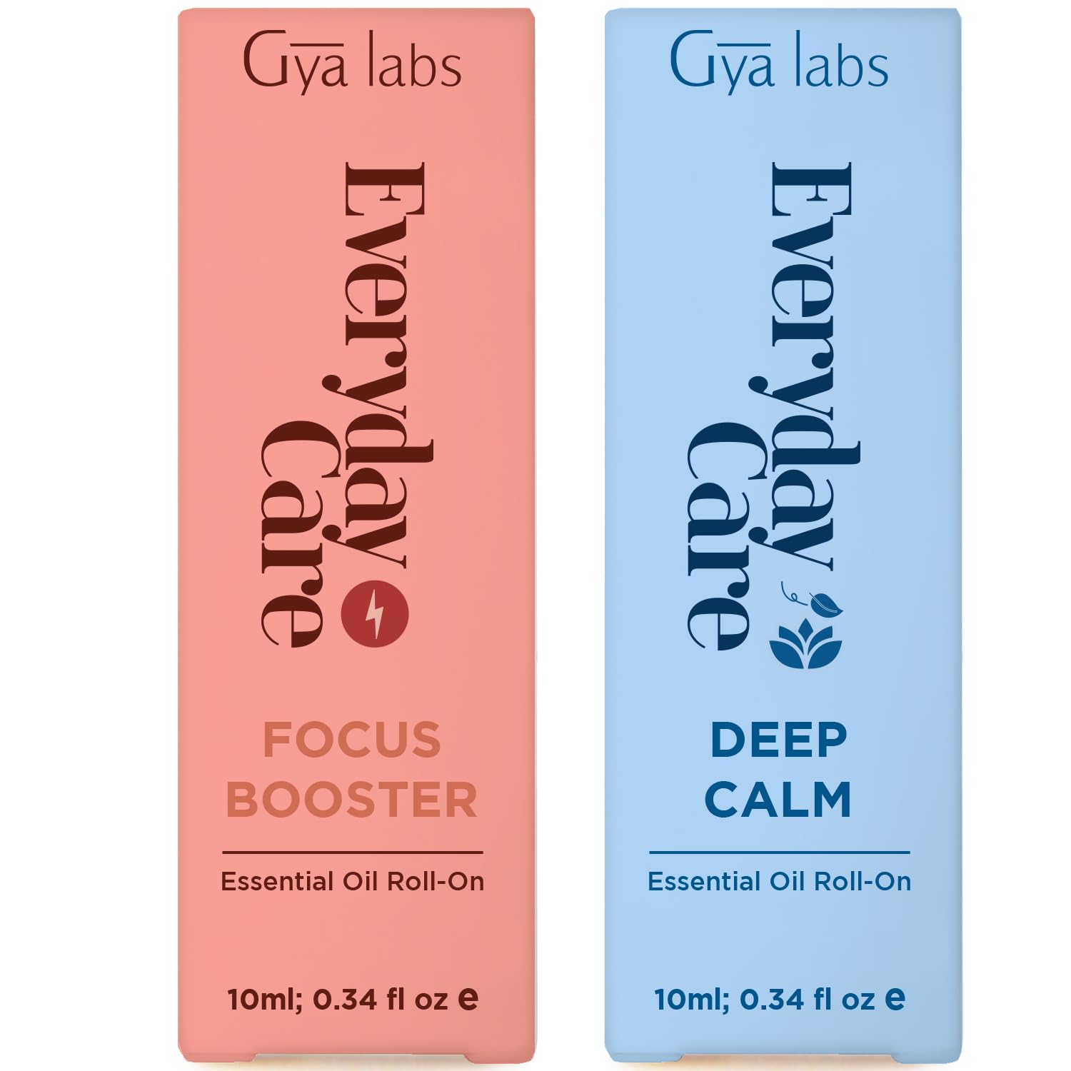 Focus Booster & Deep Calm Roll On Set - Essential Oils Aromatherapy Roll On with Essential Oil Set - 2x0.34 fl oz - Gya Labs