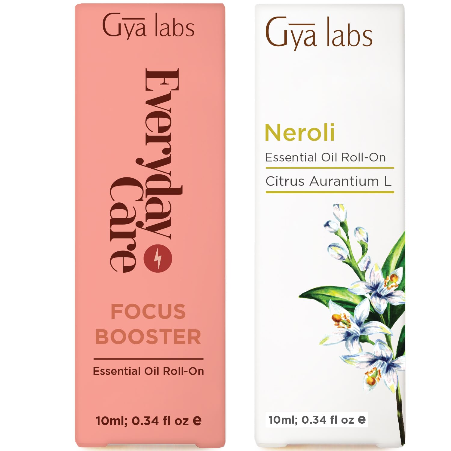 Focus Booster & Neroli Roll On Set - Essential Oils Aromatherapy Roll On with Essential Oil Set - 2x0.34 fl oz - Gya Labs