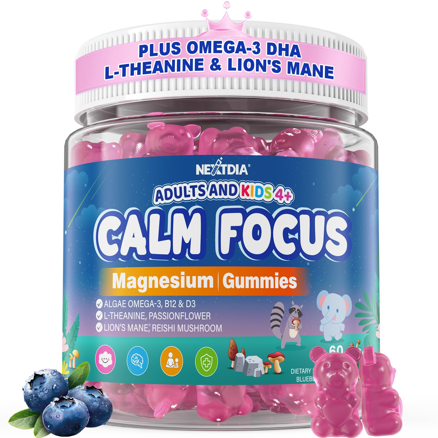 [Clean Parent-Trusted Formula] Sugar free magnesium gummies are designed for the whole family age 4 and above. Sweetened with natural monk fruit extract, with delicious buleberry flavor and easy to chew, helping protect teeth while avoiding added sugars,Adults take 2 magnesium glycinate gummies per day children take 1 gummy per day under adult supervision. These gummies are gluten-free, soy-free, 100 vegan and third-party tested — a great choice for parents who want the best for their children. [Gentle Calm Immune Support] Does your child often overly excited, or unable to settle down, leaving you feeling worn out? These kids' magnesium gummies are crafted to bring balance back to busy little bodies. With Magnesium Glycinate, L-theanine, Passionflower, and Lion's mane, they can calm restless energy while supporting immune health and overall wellness. Perfect for gym class, play and sports, helping kids stay energized when they need it—and comfortably wind down afterward. And yes, you can enjoy the same steady energy and calm focus for workouts and daily tasks, too. [Enhanced Brain Development Attention] During reading time or hands-on activities, these focus magnesium gummies act like a gentle "brain nourisher," powered by Magnesium Glycinate, Omega-3, Vitamin B12, and Lion's Mane. They support healthy brain development by fueling mind connections and encouraging steady, organized thinking. Magnesium helps settle busy thoughts, Omega-3 supports memory pathways, and B12 works with Lion's Mane to keep the mind sharp. Whether your child is doing homework or you're staying focused through your own workflow, these gummies help keep minds calm and clear. [Sl p Better, Rest Deeper] Are restless nights leaving you and your little one feeling tired and grumpy in the morning? Our Magnesium Gummies are formulated to promote restful sl p. Magnesium glycinate helps the body relax naturally, eg busy minds and soothing restless little bodies-making it easier to fal asl p. L-theanine and Passionflower add gentle m? od calm, helping create a more peaceful night. Perfect for bedtime routines, helping your family drift off to ZZz and wake up feeling refreshed and ready for a new day. [Organic Calm Focus Formula for Kids Adults] This gentle formula is formulated with magnesium and other nutrients that support brain function, and calming herbal ingredients. It helps children aged 4 and adults to relax and unwind as bedtime approaches, promoting smoother ZZz and truly restorative nights. By morning, you and your little one will feel steadier, calmer and more focused for school, work and active family routines - no melatonin or stimulants.