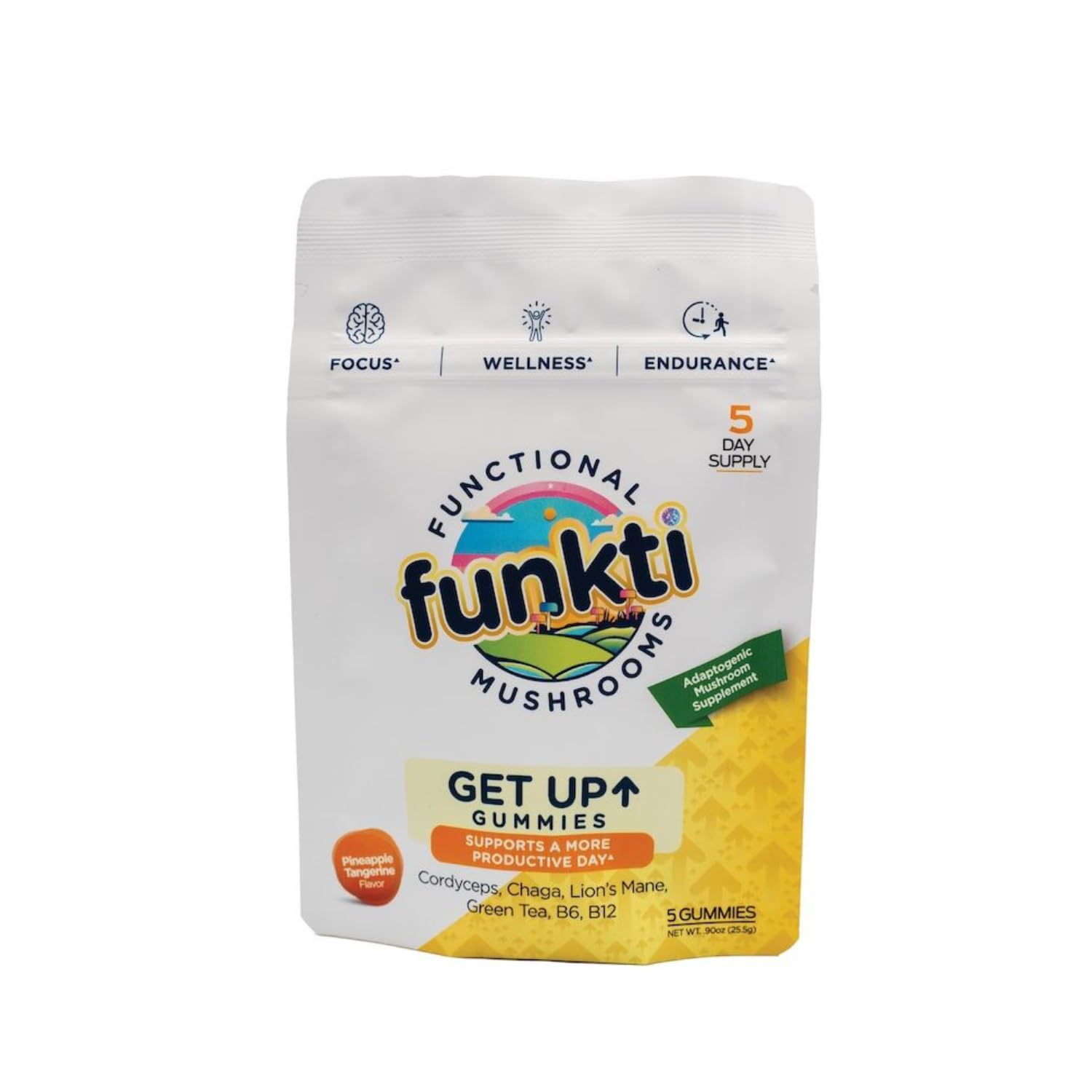 Vegan Friendly Formula: Non-GMO and gluten-free our mushroom energy supplement contains ingredients suitable for vegan diets and plant-based preferences. Made in USA. Nutrient-Packed Blend: Formulated with vitamins B6, B12, and green tea, this combination helps support energy levels and overall health providing an easy way to incorporate beneficial nutrients and antioxidants into your daily routine. Natural and Flavorful: Funkti mushroom gummies offer a delicious alternative to traditional powders, capsules, and tinctures with no strange aftertaste and a convenient gummy texture, they are easy to consume and enjoy. Carefully Crafted Gummies: Made with high-quality ingredients and produced under strict manufacturing processes to ensure safety and quality Funkti Get Up gummies are designed to enhance your wellness routine. Energy and Wellness: Packed with a combination of cordyceps, chaga, and lion's mane, this natural mushroom vitamins blend is known to naturally increase energy levels, provide immune support, and promote overall wellness. Made in USA.