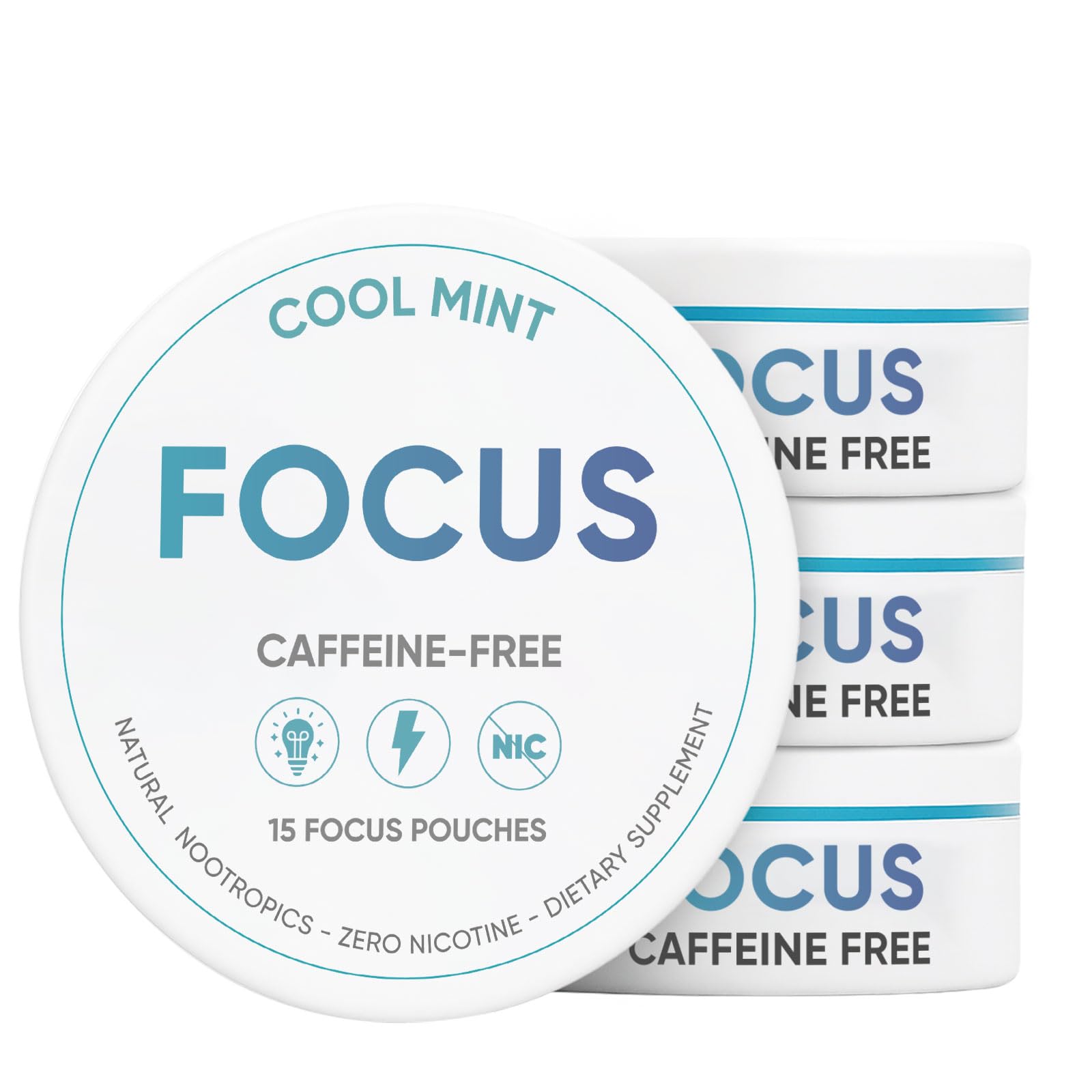 Focus Pouches - Caffeine Free Nootropic Pouches with L-Tyrosine & L-Theanine for Energy & Brain Boost - 4 Cans - 15 Nicotine Free Pouches per Can (4 Count (Pack of 15) Mint) Mint 4 Count (Pack of 15)