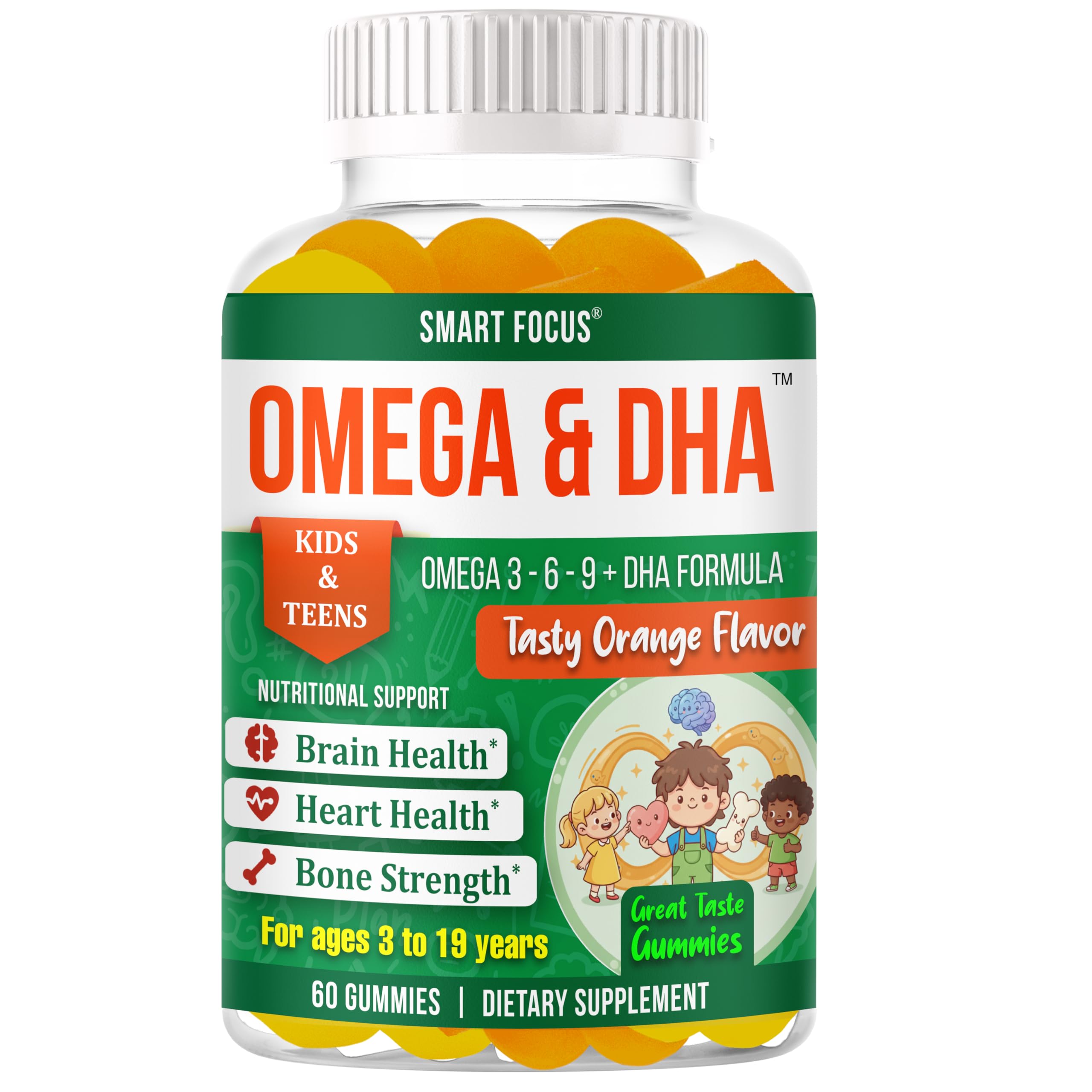 5. Trusted Choice for Kids Teens- Parents choose our clean, enjoyable formula for focus for teens, vitamins for focus kids, and smart focus brain vitamins kids. Safe, delicious, and designed for consistent everyday clarity and concentration. 4. Safe, Low Sugar Third-Party Tested- Formulated in the USA, made in a GMP-certified facility, and third-party tested. Low-sugar, Non-GMO, gluten-free support for kids brain vitamins, brain and focus gummies, and clean daily attention support. 3. Tasty Orange Flavor, Easy to Chew- Delicious natural orange flavor with no fishy aftertaste. Soft chewable gummies work great as focus gummy for kids, gummy vitamins for teens, and kids gummy vitamins focus for daily wellness. 2. Plant-Based Omega DHA Allergy-Free- Fish-oil-free omega dha from plant-based sources. Non-GMO, allergen-friendly formula ideal for families needing kids focus vitamins, supplements for kids brain, and daily gentle brain nourishment. 1. Focus, Clarity Concentration Support- Helps children stay attentive with focus gummies for kids, gummies for concentration, and brain focus supplements for kids. Supports clarity, cognitive development, and daily school or homework focus.