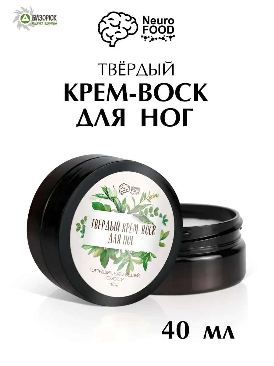 Крем воск от трещин натоптышей и сухости ног. Его твердый состав бережно ухаживает за ступнями питает смягчает обезвоженную кожу, предотвращая пересушивание, поможет устранить шелушения и огрубения, насытит кожу полезными микроэлементами, заполнит трещинки и неровности, способствует регенерации и восстановлению, нежно устраняет натоптыши и сухость. Ухаживает за ногтевой пластиной и кутикулой даря ежедневный уход и здоровый вид. Крем NeuroFood для всех типов кожи его уникальная комбинация натуральных масел и витаминов обеспечивает максимально насыщенное питание, увлажняет защищает. Пчелиный воск быстро заживляет трещины ранки и воспаления его можно использовать в качестве основы домашнего ухода для пяток.