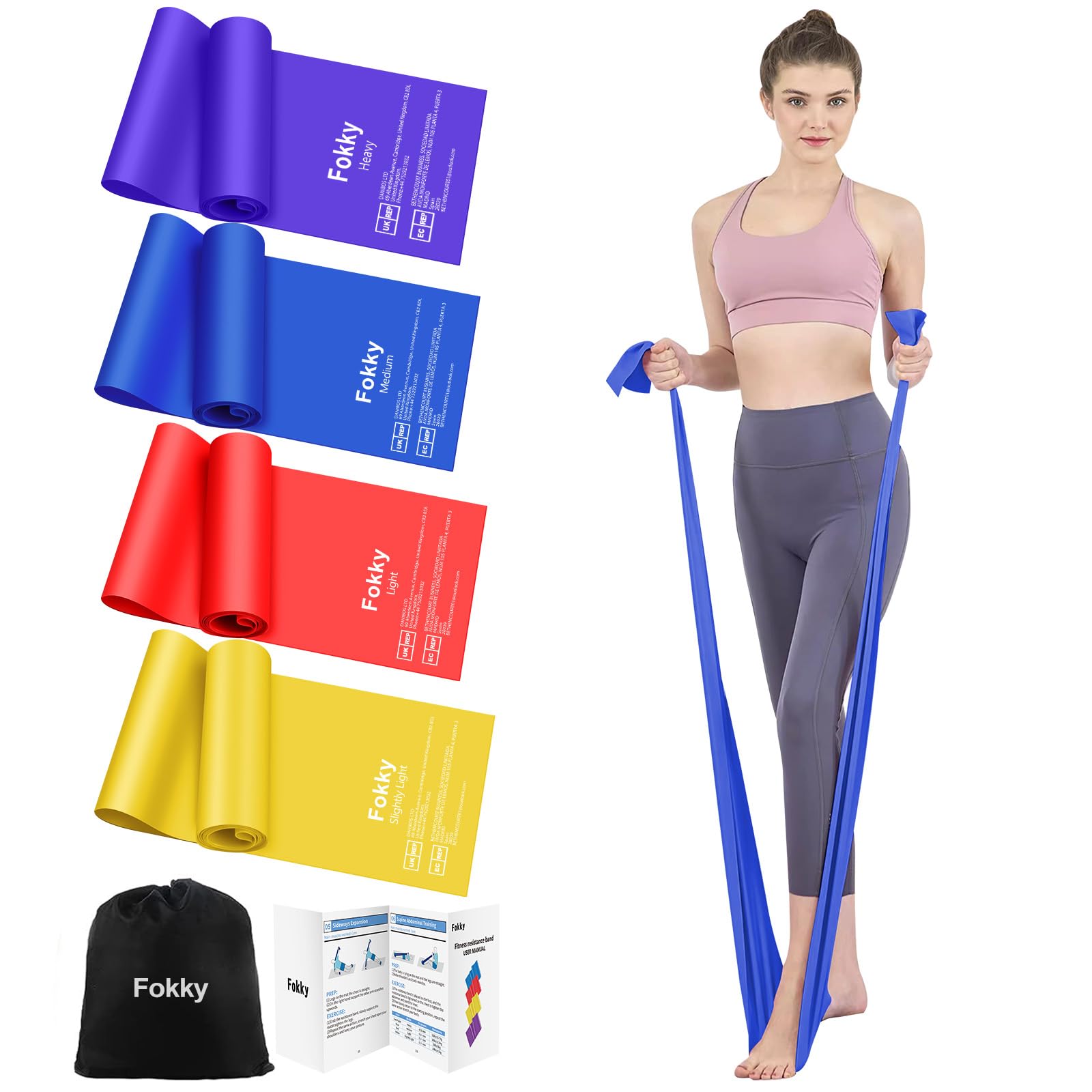 Light and portableThe gymnastics band fits easily into the supplied carrying bag.You can train anytime and anywhere.Regardless of whether you are at home, in the office, in the gym, outdoors or when traveling, you can enjoy training.Included in the scope of delivery: 4 x fitness strips (extra light light medium heavy), 1 x carrying bag, 1 x operating instructions.Multifunctional resistance tapesResistance bands set are ideal for a variety of training programs such as weight loss, yoga, pilates, crossfit, strength and flexibility training, relaxation after birth, rehabilitation training and physiotherapy etc. Resistance straps for full body trainingBody stretching more effectively, training different muscle groups and strengthening their fuselage in the arms, stomach, hips and legs.Resistance bands with 4 resistance levels1.5m resistance tapes set has 4 different resistance levels: yellow (0.3 mm) 8–10 lbs 3.6–4.5 kg, red (0.4 mm) 15–20 lbs 6, 8–9 kg, blue (0.5 mm)) 25–30LBS 11.3–13.6 kg, purple (0.55 mm), 30-35lbs 13.6-15.9kg.Regardless of whether you are a beginner or professional, you can easily adapt your workouts to your strength, muscle flexibility and your comfort level.High-quality fitness strapsThe Resistance Bands consist of high-quality TPE material that is skin-friendly, slip-resistant and soft under control and cannot be easily deformed and break.People with a latex allergy can use this fitness band without hesitation.Leicht und TragbarDie gymnastikband passen problemlos in die mitgelieferte Tragetasche. Sie können jederzeit und überall trainieren. Egal, ob Sie zu Hause, im Büro, im Fitnessstudio, im Freien oder auf Reisen sind, Sie können das Training genießen. Im Lieferumfang enthalten: 4 x Fitnessbänder (extra leicht leicht mittel schwer), 1 x Tragetasche, 1 x Bedienungsanleitung. Multifunktionale WiderstandsbänderResistance bands set sind ideal für eine Vielzahl von Trainingsprogrammen wie Gewichtsverlust, Yoga, Pilates, Crossfit, Kraft- und Flexibilitätstraining, Erholung nach der Geburt, Rehabilitationstraining und Physiotherapie usw. Widerstandsbänder für GanzkörpertrainingMit diesem fitnessbänder können Sie Ihren gesamten Körper effektiver dehnen, verschiedene Muskelgruppen trainieren und Ihren Rumpf in Armen, Bauch, Hüften und Beinen stärken. Resistance Bands mit 4 Widerstandsstufen1.5M widerstandsbänder set hat 4 verschiedene Widerstandsstufen: Gelb (0,3 mm) 8–10 lbs 3,6–4,5 kg, Rot (0,4 mm) 15–20 lbs 6,8–9 kg, Blau (0,5 mm) ) 25–30lbs 11,3–13,6 kg, Lila (0,55 mm), 30-35lbs 13.6-15.9kg. Egal, ob Sie Anfänger oder Profi sind, Sie können Ihre Workouts leicht an Ihre Kraft, Muskelflexibilität und Ihren Komfortlevel anpassen. Hochwertige FitnessbänderDie resistance bands bestehen aus hochwertigem TPE-Material, das hautfreundlich, rutschfest und weich im Griff ist und sich nicht leicht verformen und brechen lässt. Menschen mit einer Latexallergie können dieses fitnessband bedenkenlos verwenden.Fokky Fitnessbänder 4er-Set, Resistance Bands mit 4 Widerstandsstufen, Widerstandsbänder mit Tragetasche Übungsanleitung, Gymnastikband für Crossfit, Muskelaufbau,Yoga, Pilates für Männer und Frauen gelb, rot, blau, lila