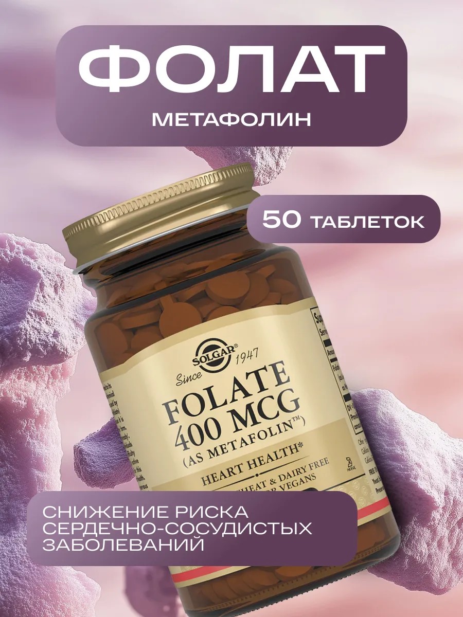 SOLGAR Фолат Метафолин, Солгар 400 мкг, 50 шт.