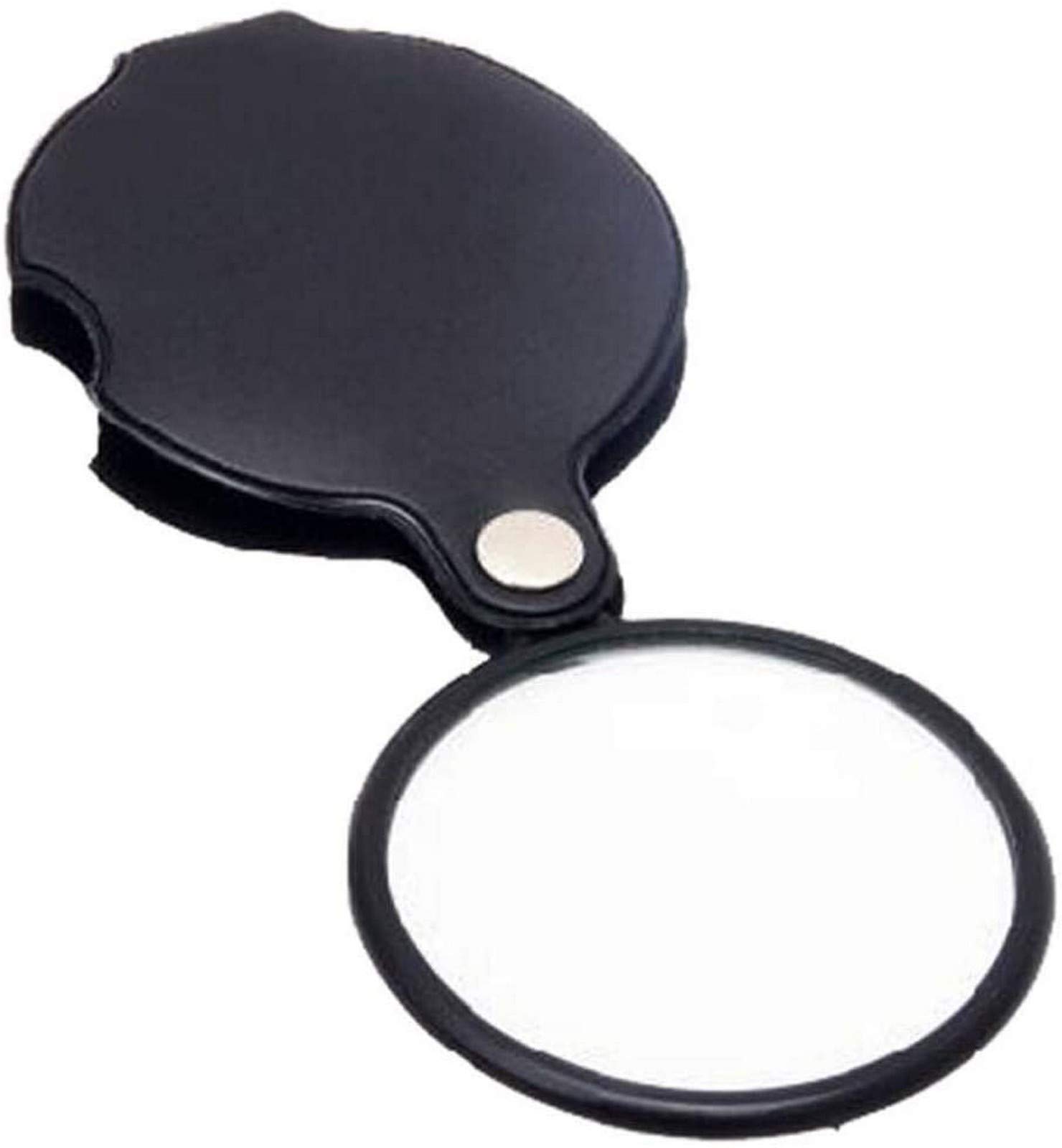 Foldable Leather Pocket Loupe Portable Round Reading Magnifier 10X Glass Lens Small with Black Cover Case for Shopping Better Life