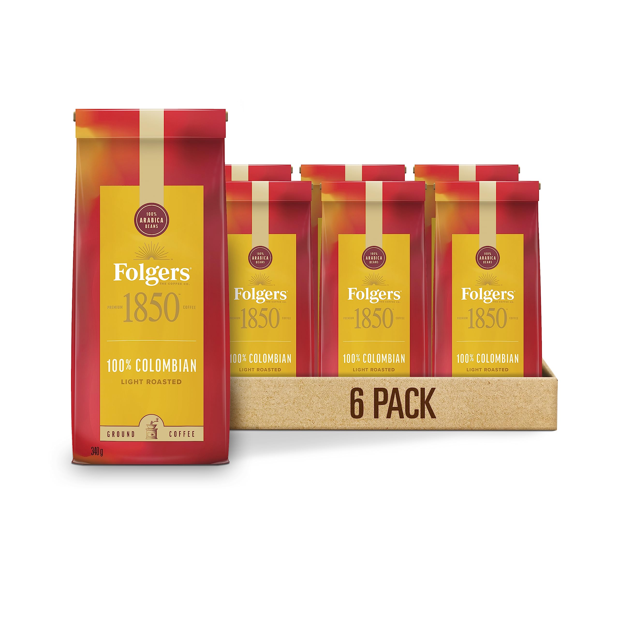 Folgers 1850 100% Colombian Roast & Ground Coffee Light Roast 340g (Pack of 6) Roast & Ground Colombian 340 g (Pack of 6)