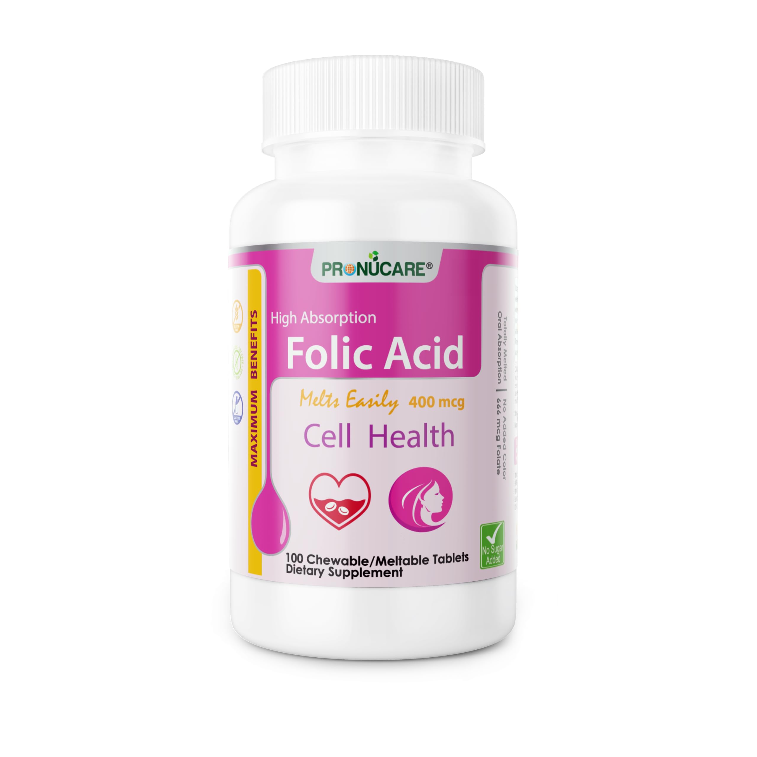 PRONUCARE chewable meltable Folic acidis engineered for maximum oral absorption and mouth-dissolvable tablet, Hi-Tech manufactured tablet to provide a sustained release of Folic Acid.