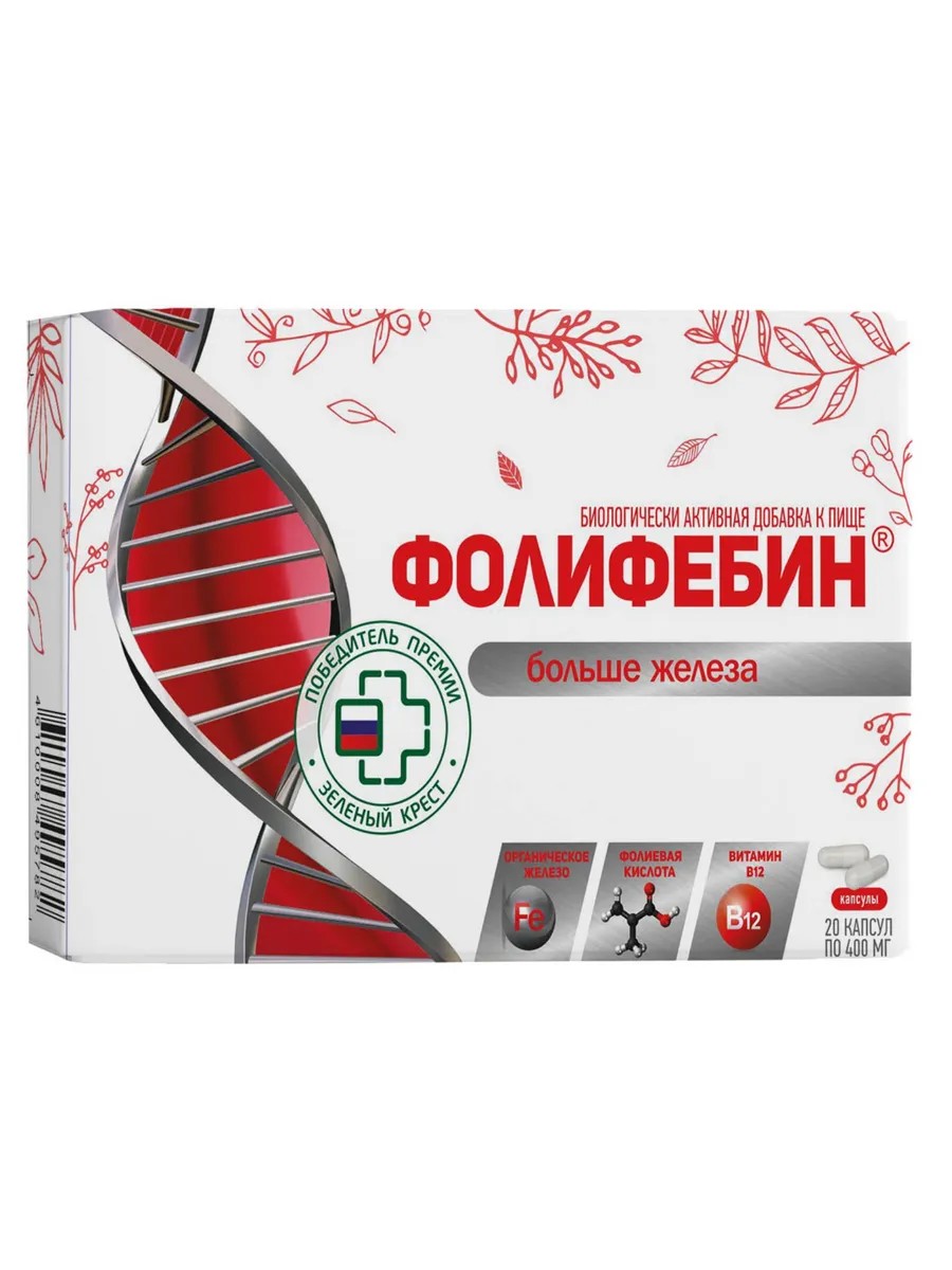| Торговое наименование | биологически активная добавка к пище "Фолифебин" (капсулы по 400 мг) |
