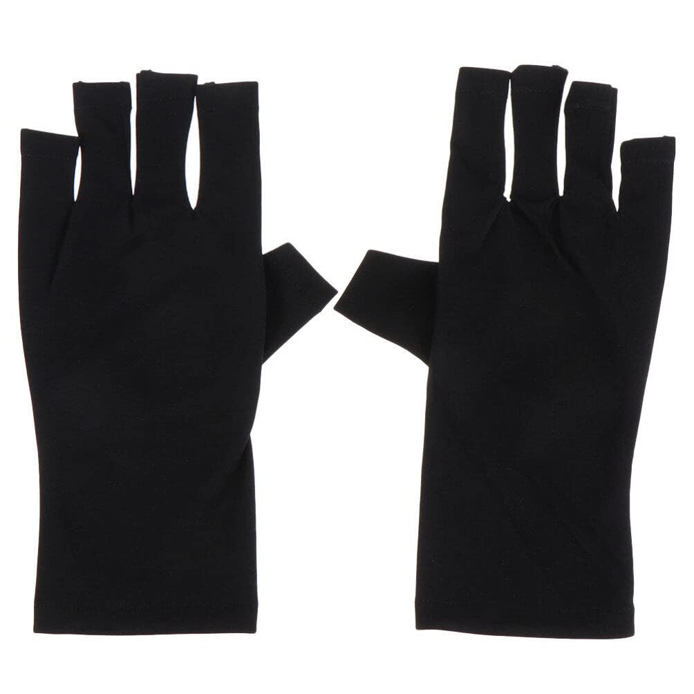 Description Made of polyester material, the uv gloves for gel nail lamp is and comfortable to wear, not easy to deform, can be for a time. Manicure UV protection gloves can block UV and protect hands from sunburn. By wearing gel nail gloves, you won't have to worry about the harmful effects of UV rays. Features -Color:Black -Material:Polyester -Size:22.10X10.00X0.50cm/8.69X3.93X0.20in - The fingerless gloves are designed to be partially exposed, providing maximum tactile sensitivity. - The UV gloves for nails can also be worn during other activities that expose your hands, such as gardening or outdoor sports. - The gloves are designed to provide a comfort and flexibility, allowing you to move your hands freely during use. - UV gloves offer comfortable wearing experience, suitable for most women, easy to use mobile phones, tablets, - Manicure gloves are made from polyester, materials that are resistant to tears, ensuring -lasting use Package Including 1 x pair of uv protection gloves DIRECTIONS keep clean