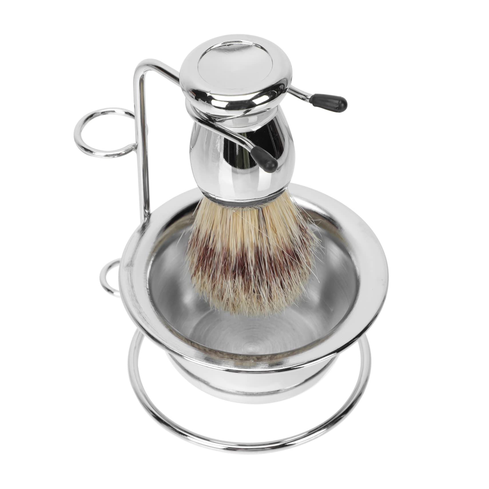 Package list 1 x storage shelf 1 x bowl 1 x brush characteristics - Size: 12.80 x 11.50 x 11.50 cm/5.03 x 4.52 x 4.52 inch cleaning tool for facial care. - Material: razor brush set stainless steel. - Color: silver razor brush. - This everyday shaving set is a fantastic gift for men in your life, with a shaving brush shaving brush. - Set with a special bowl for shaving soap simple cleaning after shaving, very practical shaving foam shell. - High quality material, resistant to corrosion, for a longer use of the hair shaving brush. - Effectively increase the bubble shaving cream ensure a pleasant shaver experience.Brot brush holder. -With fine processing of high-quality material can be a long hair bearing brush. Description of the goods Men's suit Bartraasier set is high quality material for a pleasant shaver experience.Travel razor cream with storage shelf design is very easy to store the different shaving tools.Men's nursing set for manscaping A good gift for your husband or father