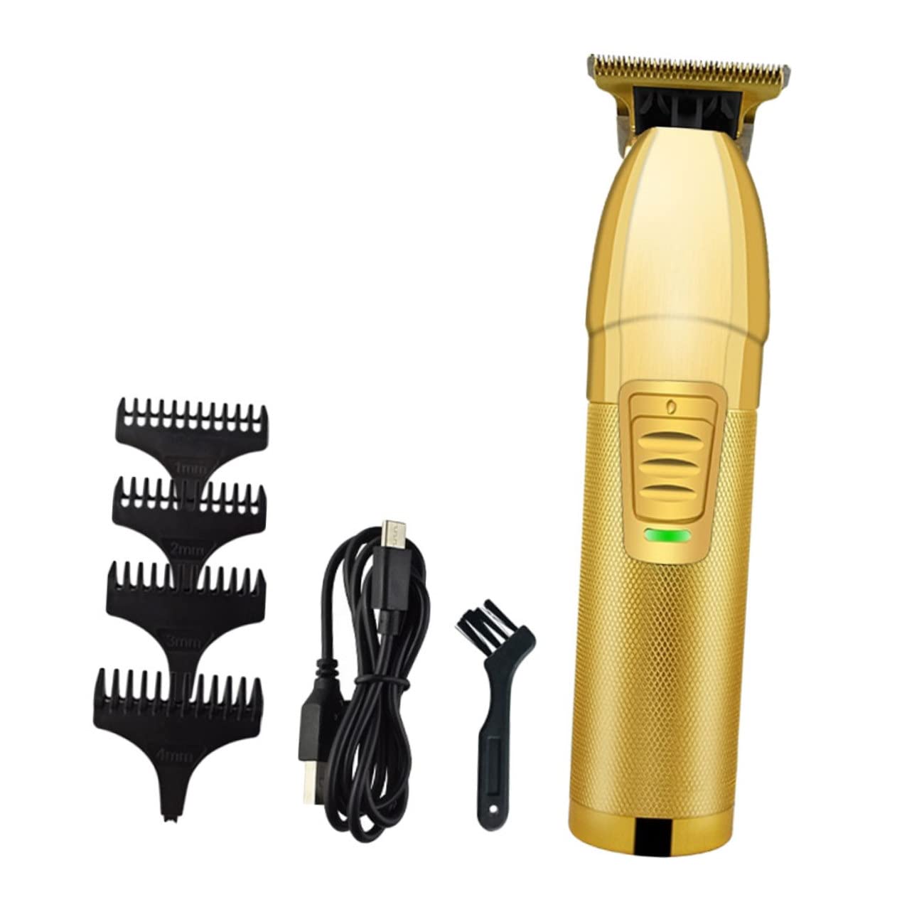 Package List 1 x host 4 x 1 x brush 1 x charging cable 1 x manual Characteristics - Size: 16.00X4.00X4.00cm/6.29X1.57X1.57in men trimmer. - Discharge time: about 3 hours electric clippers. - Material: ABS and metal and aluminum Male . - Voltage: 3 Trimmer. - Lithium battery: 1400mAH electric - Charging time: about 3 hours USB clippers. - Color: golden professional shears. - USB charging, very easy to charge and use, convenient and practical Professional Trimmer. - A good selection for your father, boyfriends or husband, they will like it Barbers Trimmer. - Novel and delicate appearance design, fashion modeling, compact size, convenient barber shears. - Premium materials, very sturdy and for term use cutting shears. - Portable and compact, easy to hold. Suitable for novices use men clippers. Goods Description Electric Trimmer This is a professional electric clipper kit, made from high-grade materials, is smooth and does not damage your hands.rechargeable clippers for men Widely application range, convenient and useful.Male Do you want to have a novel and cool hairstyle? Are you still worried about not having the right trimmer tools? Don't worry, we can help you