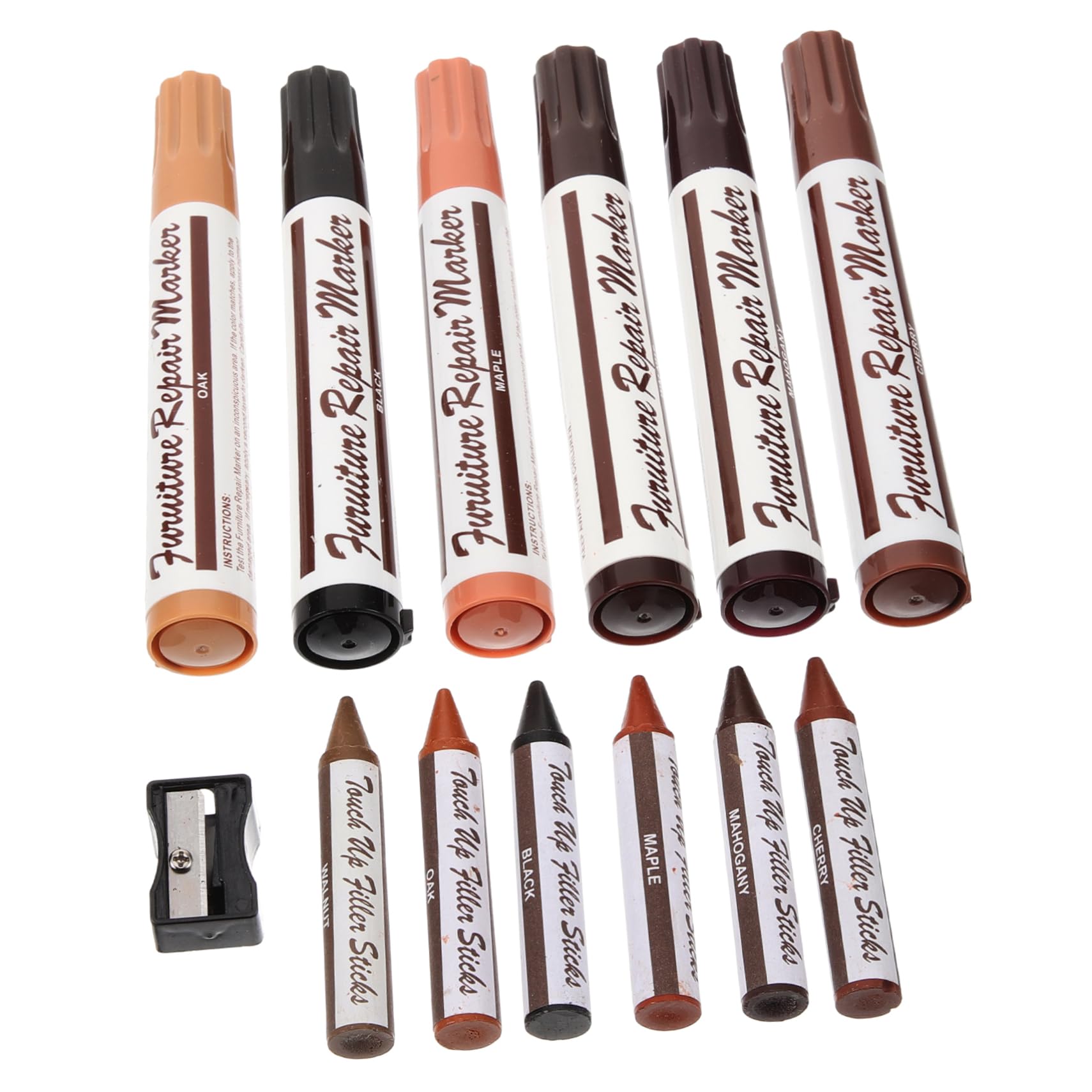 Package List 6 x Markers 6 x Crayons 1 x Pencil Sharpener Characteristics -Material:Plastic, Metal furniture repair accessories -Color:Assorted Color furniture scratch pen -Size:13.50X2.00X2.00cm/5.31X0.79X0 furniture repairing supplies. - This product is mainly suitable for removing and repairing paint , which is very practical touch-up marker for furniture. - With reasonable design and excellent texture, it can quickly repair without excessive skills wood repair markers. - Contains different colors, can meet your different needs, you can use it with confidence furniture markers for . - It has a unique design, easy to master, and can bring convenience to your repair work wood repair kit. - Made with excellent craftsmanship, it can perfectly match the original paint of your furniture wood stain pen. Goods Description wood floor repair kit It instantly covers blemishes, chips, and nicks on scratched wood and wood finishing.furniture markers for Draw over with the touch up marker directly.furniture scratch pen Simply draw over the scratch, allow it to quickly dry, and watch the disappear before your eyes! These are safe to use on all types of wooden furnitureFurniture repair pen-- with reasonable design and excellent texture, it can quickly repair without excessive skills. Furniture pen-- this product is mainly suitable for removing and repairing paint , which is very practical. Furniture repair markers for wood-- made with excellent craftsmanship, it can perfectly match the original paint of your furniture. Floor scratch repair kit-- instantly dries and coats over to hides scuffs, gouges and stains,wax and polish won’t smudge it. Scratch repair pen-- can be written on any surface, metal, glass, wood, stone, plastic, paper and so on, widely used. Plastic, Metal.