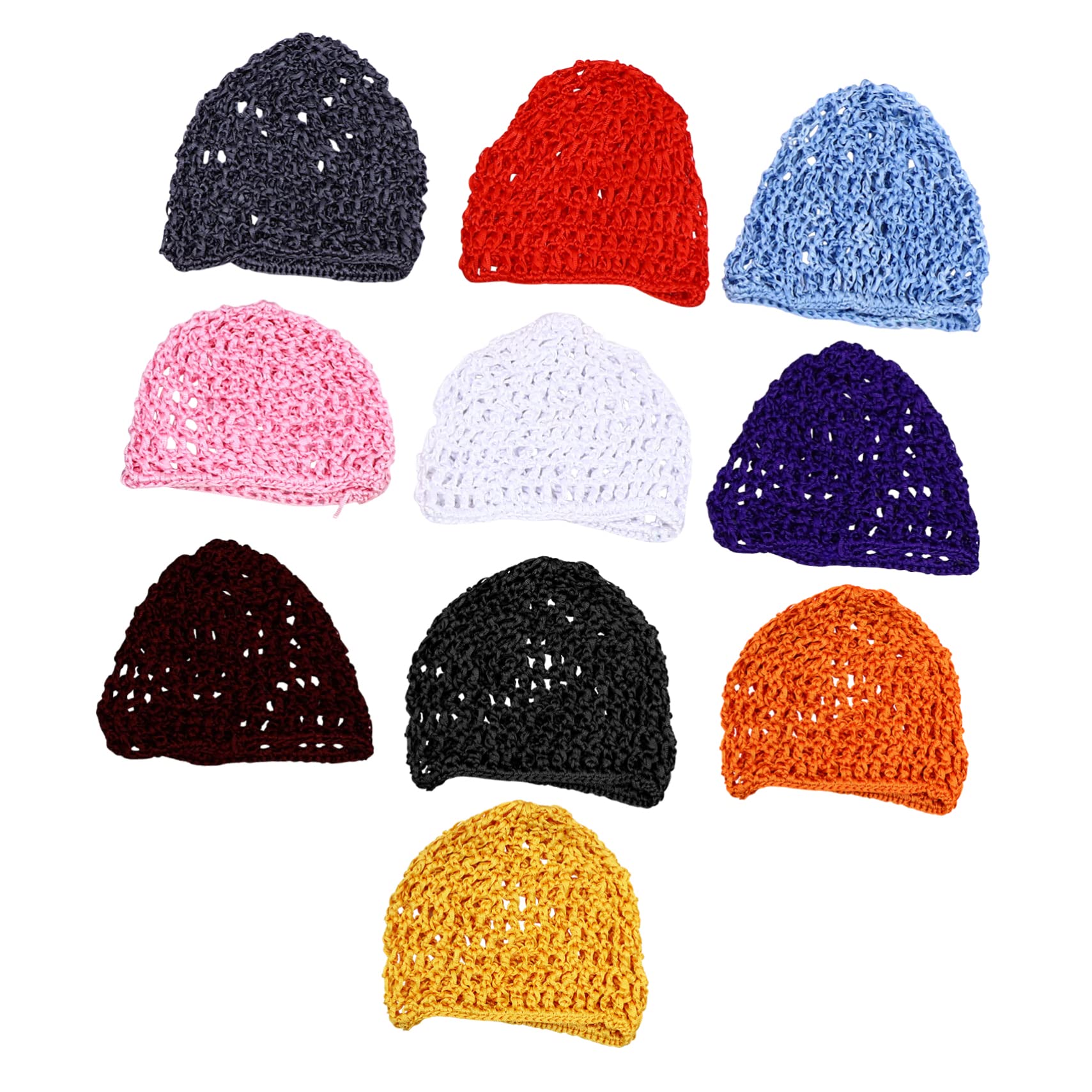 Package Include 10 x net hats Features - Material: Cloth crocheted hair net. - Size: 20.00X14.00X0.50 cm/ 7.86X5.50X0.20 inch wrap. - Color: Blue, red, purple, white, black, orange, pink, grey, yellow, coffee night cap hat for woman. - and breathable, the hat is very comfortable to wear for you, it has no harm to your skin ponytail. - It is made of high-grade cloth material, which can be for a time sleeping crochet hairnet. - It is portable and lightweight, can be carried easily and conveniently when in travel Women Net Hats. - You can send it to your families and friends as a gift, they will be happy mini hair ties. - Easy to put on and take off. Perfect for bathing and sleeping for you needles. Goods Information needles The net hat can be folded to very small size, lightweight, easy to carry at travel.Hair Wrap Mesh Net It also can be a good gift choice for your female friends, they will like it very much.Sleeping Hairnet It is made from material for time and use
