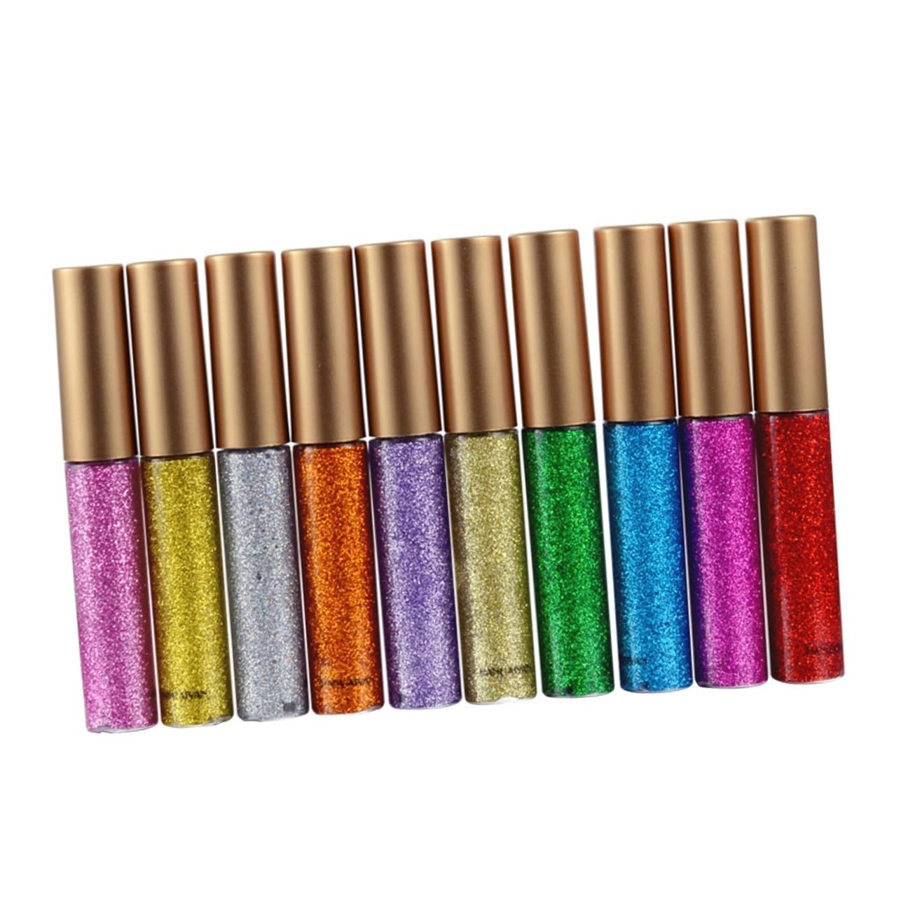 Package List 10 x Eyeliner Glitter Pigmented Sparkling Metallic Liquid Glitters Eyeliner Characteristics - Color: As shown liquid eyeliner - Material: material metallic liquid eyeliner. - Size: 8 x 1.2 x 1.2cm (LxWxH) shimmery eyeliner. - Each color is fully packed with blinding glitters for a truly unique look. Colors including silver, gold, blue, green, purple, hot pink and so on glitter . - The metallic glitter eyeliner provide you a shining shining eye, suitable for Halloween Makeup Party or other party glitter eyeliner. - Brilliantly long-wearing liquid sparkle eyeline glitter eyeliner. - Goes on smoothly without skipping, smudging, or pulling;Best black liner to create the cat eye . - for your friends and yourself liquid . - Uniquely lightweight, it glides on effortlessly, and then dries down smoothly, locking in maximum sparkle with minimal fallout, making you the eye-catcher in every occasion. Goods Information Whether you want to just dress up your everyday look a bit, or craft an extra-special look for a night on the town, this set will have you covered.glitter liner for eyes With 10 vibrant colors in this set and by using glitter, you can create so many looks you like, from subtle, natural to and exotic.metallic liquid eyeliner the daily makeup look, special events or occasions.glitter eye shadow This and eyeliner set is a great way to add some sparkle to your lookGlitter liner for eyes: brilliantly long-wearing liquid sparkle eyeline glitter. Eyeliner: for your friends and yourself. Liquid eye shadow: uniquely lightweight, it glides on effortlessly, and then dries down smoothly, locking in maximum sparkle with minimal fallout, making you the eye-catcher in every occasion. Metallic liquid eyeliner: the metallic glitter eyeliner provide you a shining shining eye, suitable for halloween makeup party or other party. Glitter eyeliner liquid: each color is fully packed with blinding glitters for a truly unique look. colors including silver, gold, blue, green, purple, hot pink and so on.