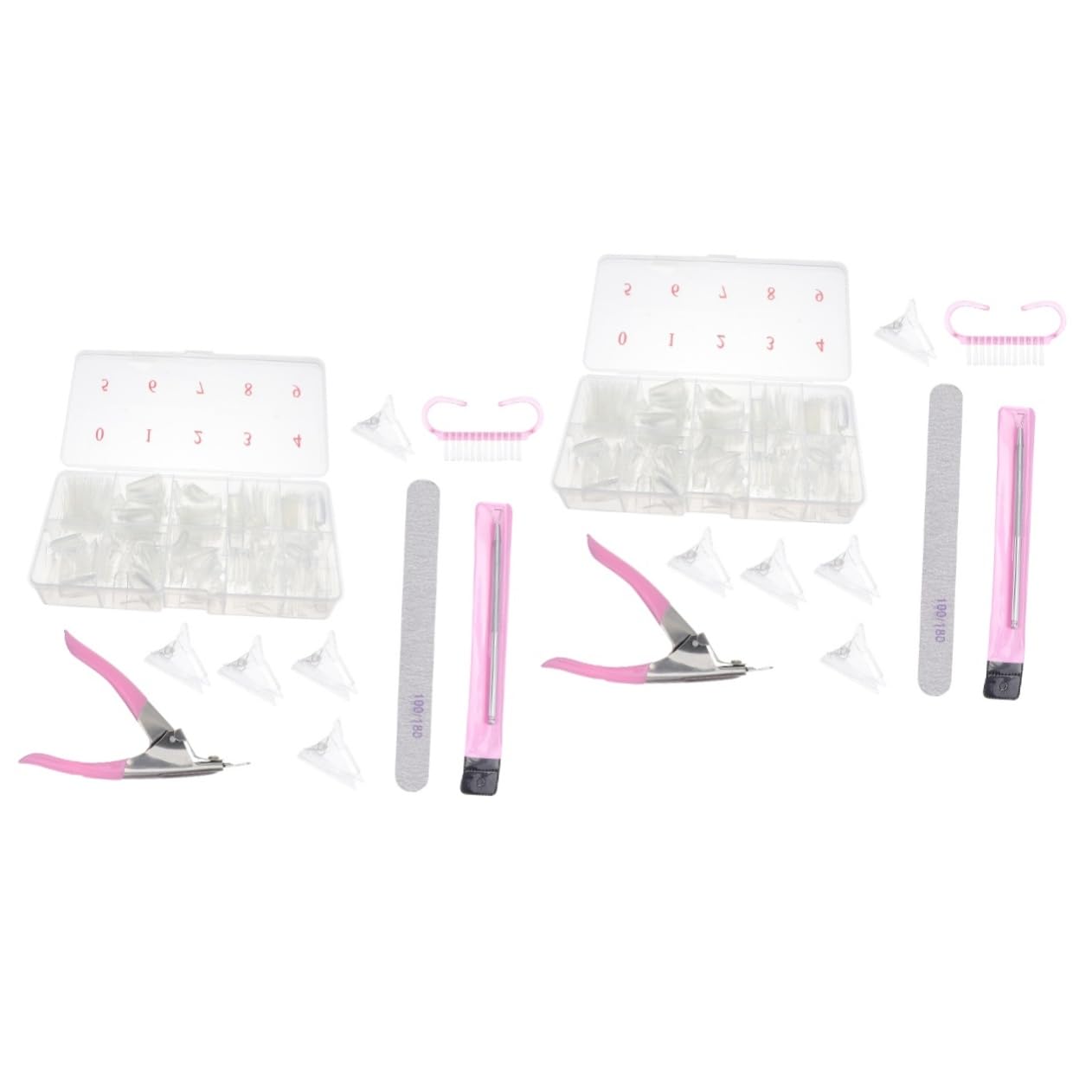 FOMIYES 2 Boxes Nail Art Box Nail File Buffer Coffin Nail Tips Clear Nail Tips False Nails Clear French Nails Long Fake Nails Nail Art Brush Nails Kits Postizas Manicure Glue Plastic