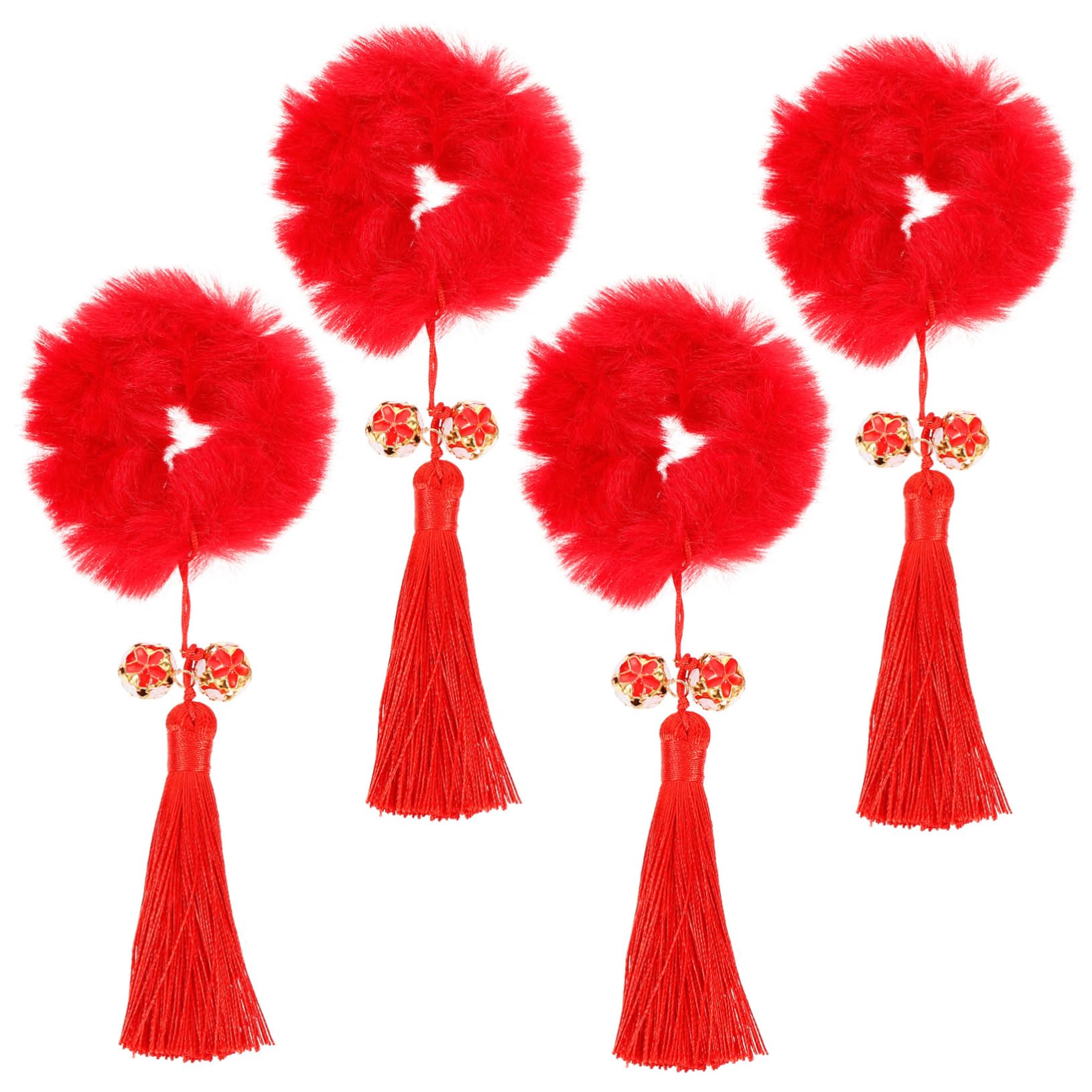 FOMIYES 2 Pairs New Year Headdress Ribbon Bands Wedding Xmas Hair Bobbles Ponytail Ties Bows Rubber Yoga Twist Hair Clip Holder Spring Festival Headdress Hairpin Polyester Tassel Child