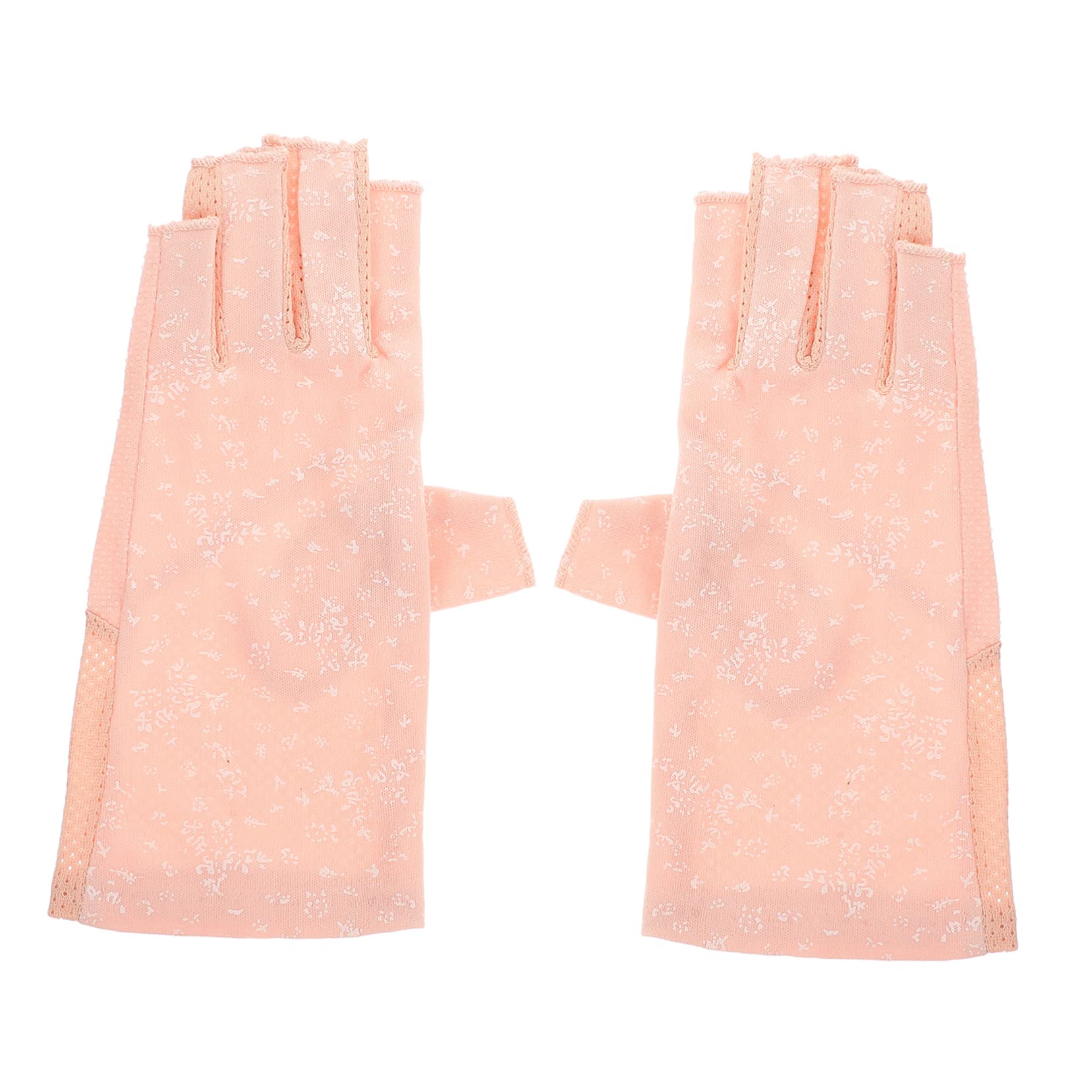 FOMIYES 2 Pairs Sun Protection Half Finger Gloves UV Hand Protector Skin Protective Gloves Manicure Tools UV Gloves Womens Glives Salon Miss Accessories Pink Nylon
