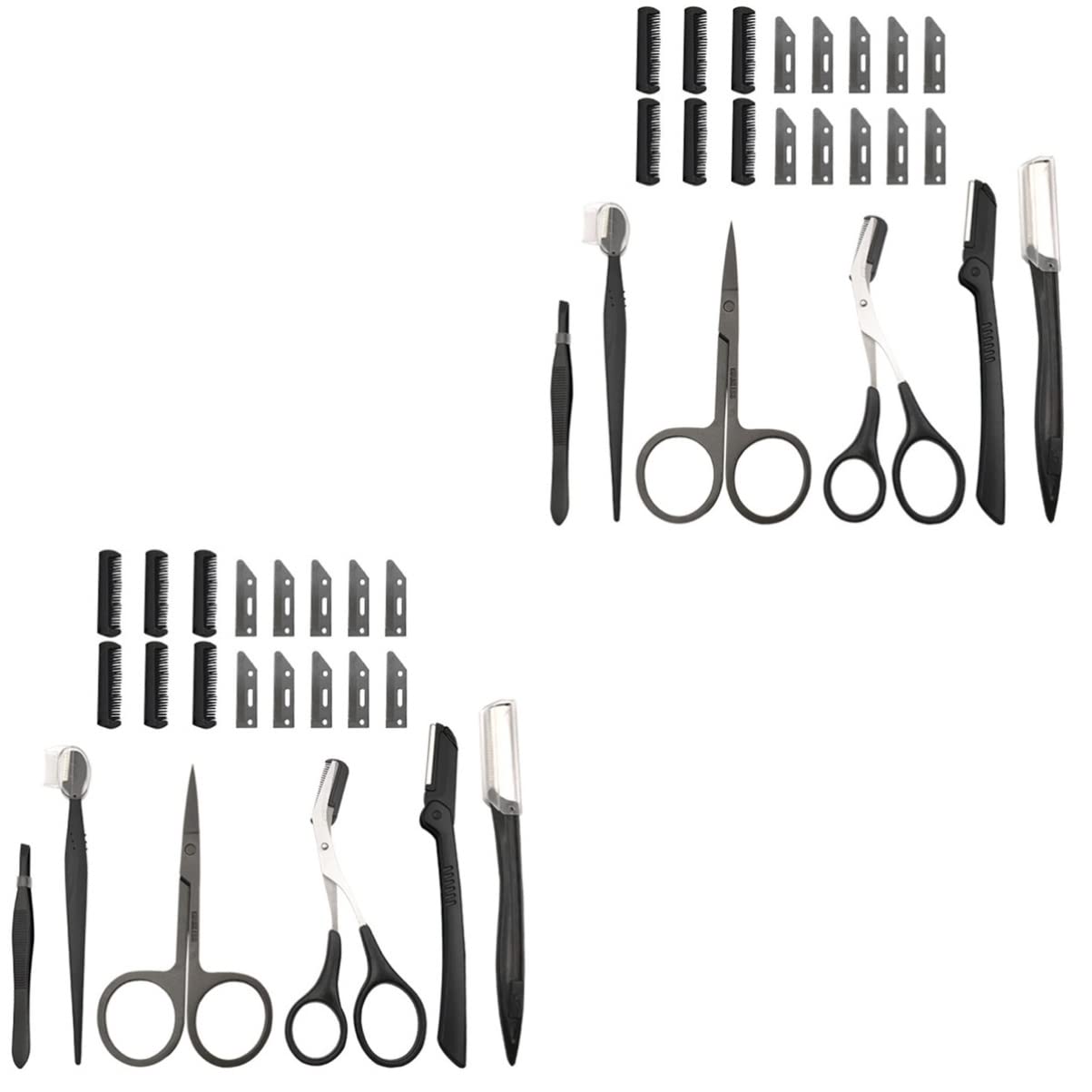 Package Include 20 x blades 8 x eyebrow 12 x other tools Characteristics - Made of , durable and use. You can safe to use it. - Color: Black. - Material: Stainless Steel and Plastic. - Size: About 12.70X4.20X0.30cm/ 4.99X1.65X0.12inch. - This set can be used as a nose trimmer. A great get to tool for both man and woman. - Shaping are great for trimming brow hair and helps to shape your eyebrows. - eyebrow trimming kit to meet more needs. - With many different functions of eyebrow , which can meet your diverse needs. Goods Description These item is eyebrow trimmer set. Made of premium stainless steel and plastic, durable for long time use. Lightweight, easy to carry. Remove unwanted facial or eyebrow hair etc. Unique design to achieve the balanced and stable use. Suitable for professional using or personal using.