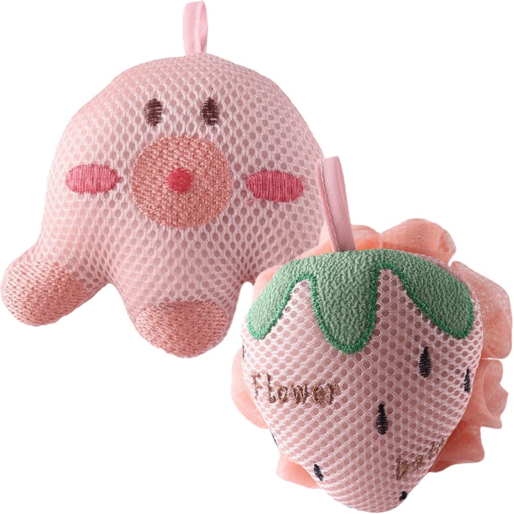 Description Our bath balls will help you to clean skin. Reasonable design can help you brush your body conveniently and effectively remove the dust and excess oil from your skin surface. Dense mesh bath balls blistering richer and bring you a comfortable bath experience. Features - Color: As Shown - Material: Polyester filled cotton, PE - Size: About 12.00X10.00X6.00cm/4.72X3.93X2.36in - Made of safe material which features with stability and durability, smooth for durable usage. - Supple full mesh bathing balls tend to produce richer lathers and are gently exfoliating and cleansing skin. - Deep cleansing of your skin, making your shower lotion or gel work better, deep clean the skin surface, effectively scrub the skin. - Reasonable design makes it easy to produce rich foams, which can better help you to complete the cleaning work. - to relax muscles, , promote as well as increase the elasticity of your skin. - Color: As Shown. - Size: 12x10cm. Package Including 1 x strawberry shape bath ball 1 x octopus shape bath ball???? BATH SHOWER SPONGE - Lovely and charming presents for : when Childrens Day or your birthdays are coming, please prepare these pouf body scrubbers for your son, daughter, grandson, granddaughter, nieces and nephews, and they will love these lovely and charming presents, also fitting for anniversary, homecoming and housewarming. ????BATH SPONGE SWIRL ; Made of safe material which features with stability and durability, smooth for durable usage. Supple full mesh bathing balls tend to produce richer lathers and are gently exfoliating and cleansing skin. ????SHOWER BACK SCRUBBER ; Reasonable design makes it easy to produce rich foams, which can better help you to complete the cleaning work. to relax muscles, , promote as well as increase the elasticity of your skin. ????SHOWER PUFF : these cartoon shower loofahs are combined with mesh and cute animal dolls, made of PE and fabric material, reliable and stable in quality, soft and gentle to touch, comfortable and convenient to use, washable and reusable, and dry out, serving for a long time easily. ????SHOWER BALLS : these cute bath can help to produce rich foam with shower gel, easy for you to clean the whole body, making your skin more smooth and neat, ideal for daily shower, bath and cleaning, and also practical for gentle exfoliating and scrubbing your body to remove dead skins.