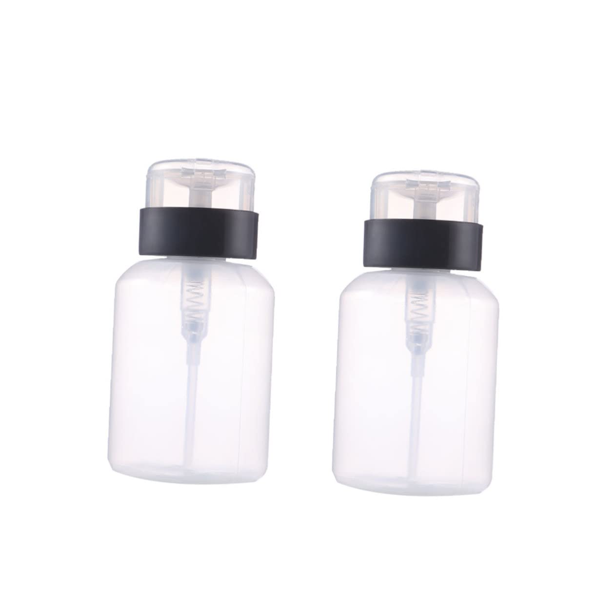of the 2-Pack Pump Bottles: Features - Size: Approximately 6 x 6 x 12 cm - Product Information: Pump Bottle - Material: PP pump bottles. Color: As shown. - Widely used, whether you want to use it to carry water, liquids, or something else, this bottle can carry well. You can place your bottles of alcohol on a table or wherever you want. - And its suitable size means you can even keep it in a pouch. Nail polish remover bottle. - Design with a longer straw allows you to pump liquid into this bottle. - Airless pump bottles prevent air and impurities from entering. Keep the liquid inside. - Made of safe and durable material for long-term use, crafted with a leak-proof design. Product Information: Alcohol Bottles - A delicate and well-made design makes them suitable for storing cosmetics and leak-proof. Squeeze bottle for nail polish remover for travel use. Pump Bottles This item is a set of 5 pump bottles for storing cosmetics. Liquid storage bottle Made of safe and durable material for long-term use Safety Warning 1