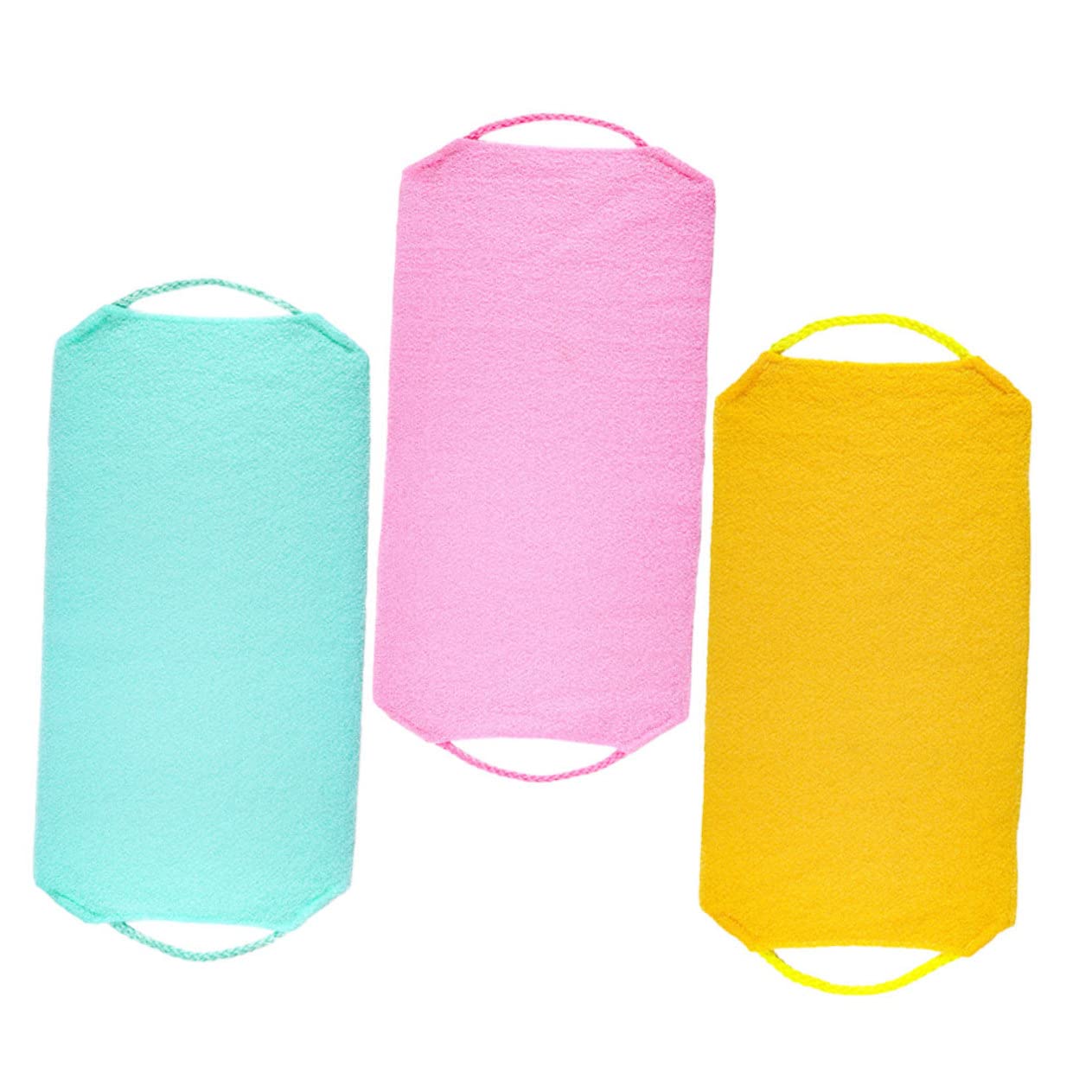 Package List 3 x Back Scrubbers Features -Material:40% Polyester, 40% Nylon, 20% bathing washcloth -Size:55.00X19.50X0.50cm/21.61X7.66X0 exfoliating towel for shower. -Color:Yellow, Blue, Pink skin bath wash towel -This bath towel is easy to store by folding when not in use and will not take up extra space bath towels. -With handle on the both side. This bath towel is enough to easily reach your entire back back scrubber. -This exfoliating bath towel will help you to remove the exfoliation from your skin and prevent your body from producing oil clogs loofah scrub. -This bath towel is made of good and harm free material, which will last for a time loofah exfoliator. -You can use this towel to help exfoliate your back. This way your skin will look very smooth after the shower exfoliating towel. Goods Description shower scrubber Are you looking for a good bathing tool? Our bath towel is a good choice.Loofah Face Brush This bath towel is made of good material, which will last for a time.bath cloth towel This way your skin will look very smooth after the shower.bathing scrubber You can use this back scrubber towel to help exfoliate your back